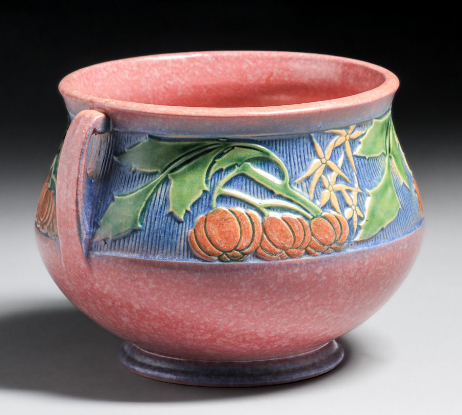 - Roseville Pottery Pink Baneda Two-Handled Jardiniere c1930s