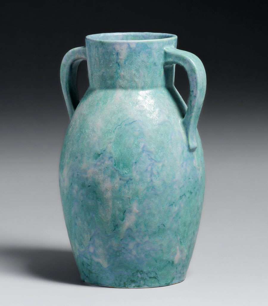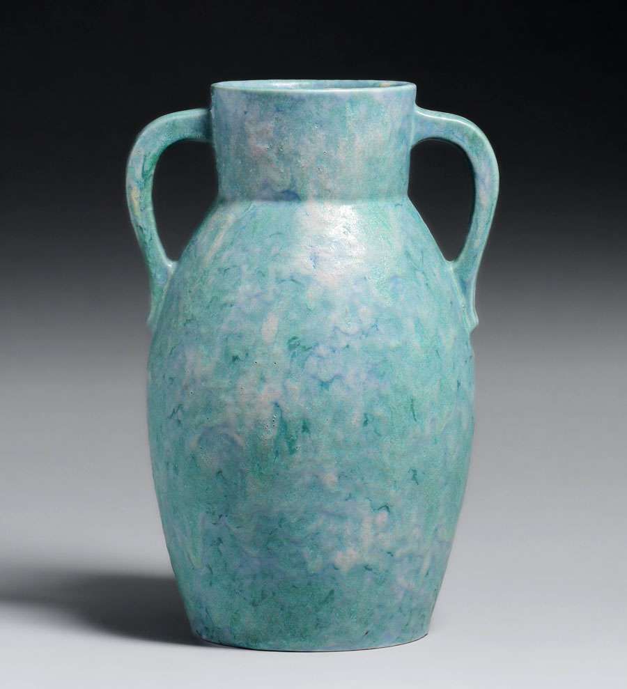 - Roseville Pottery Blue Carnelian II Two-Handled Vase c1920s