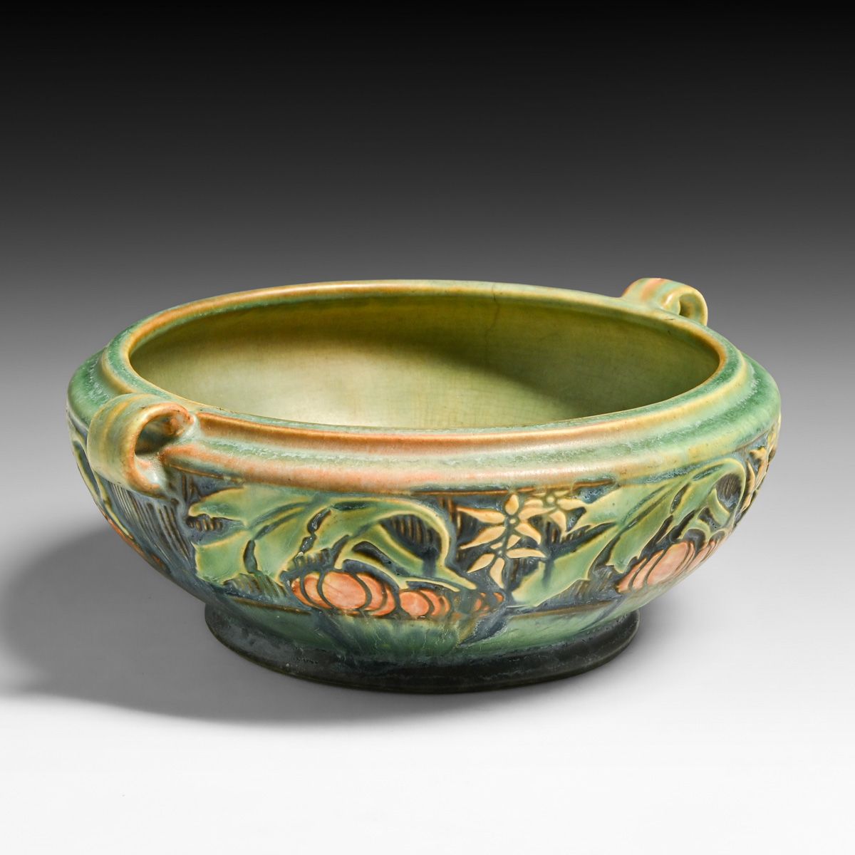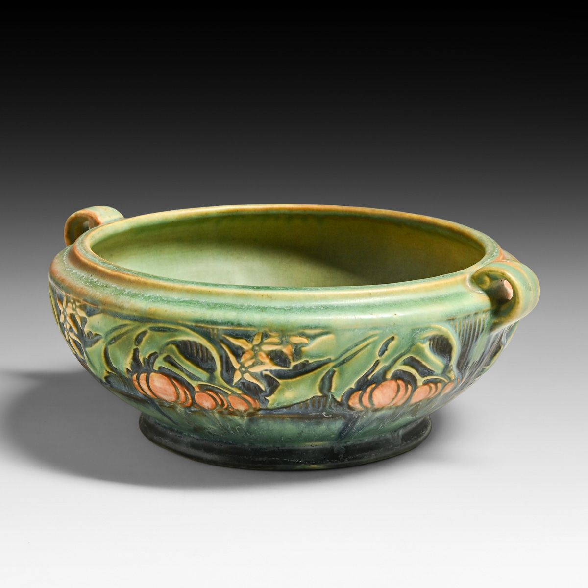 - Roseville Pottery Green Baneda Two-Handled Bowl c1930s