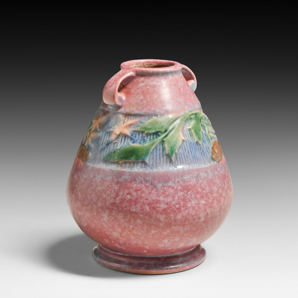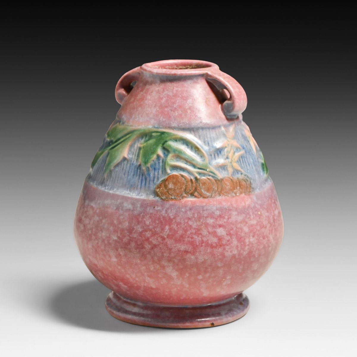 - Roseville Pottery Pink Baneda Two-Handled Vase c1930s