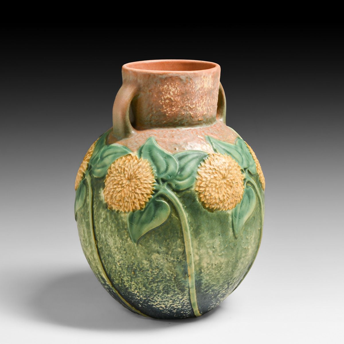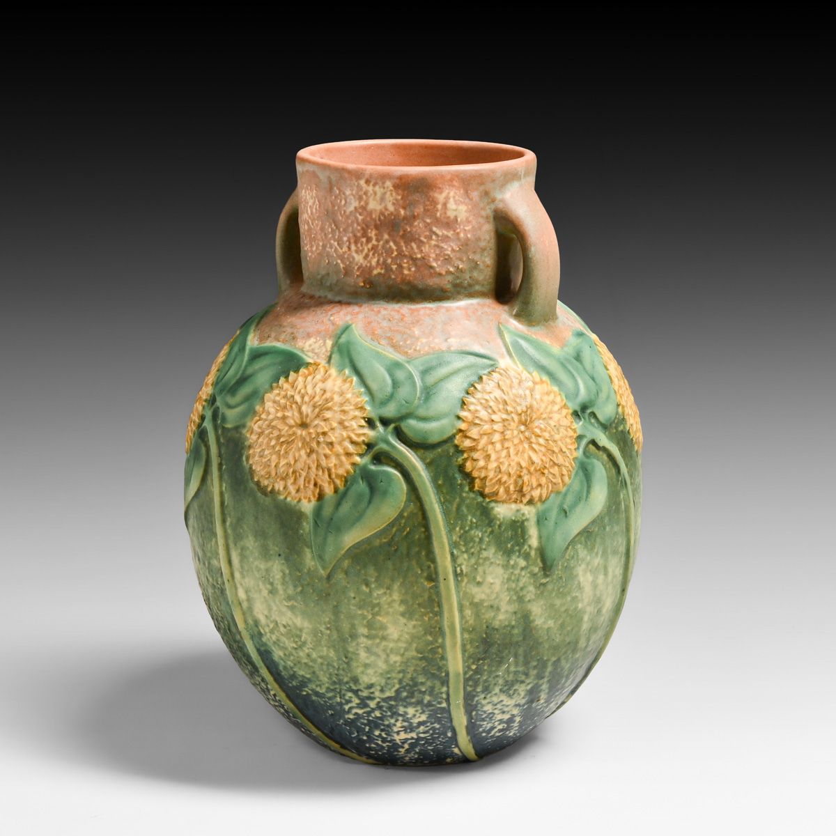 - Roseville Pottery Sunflower Two-Handled Vase c1930s