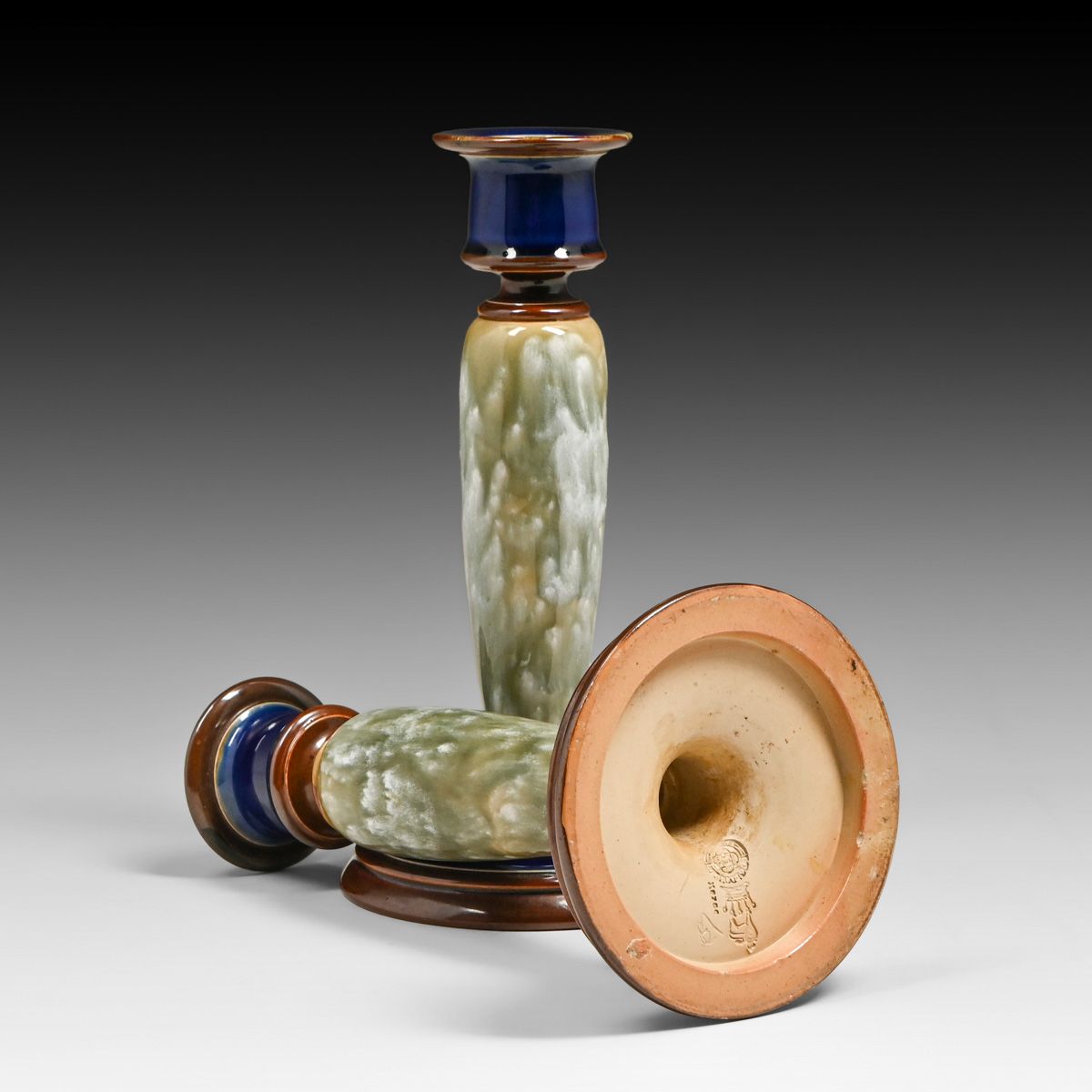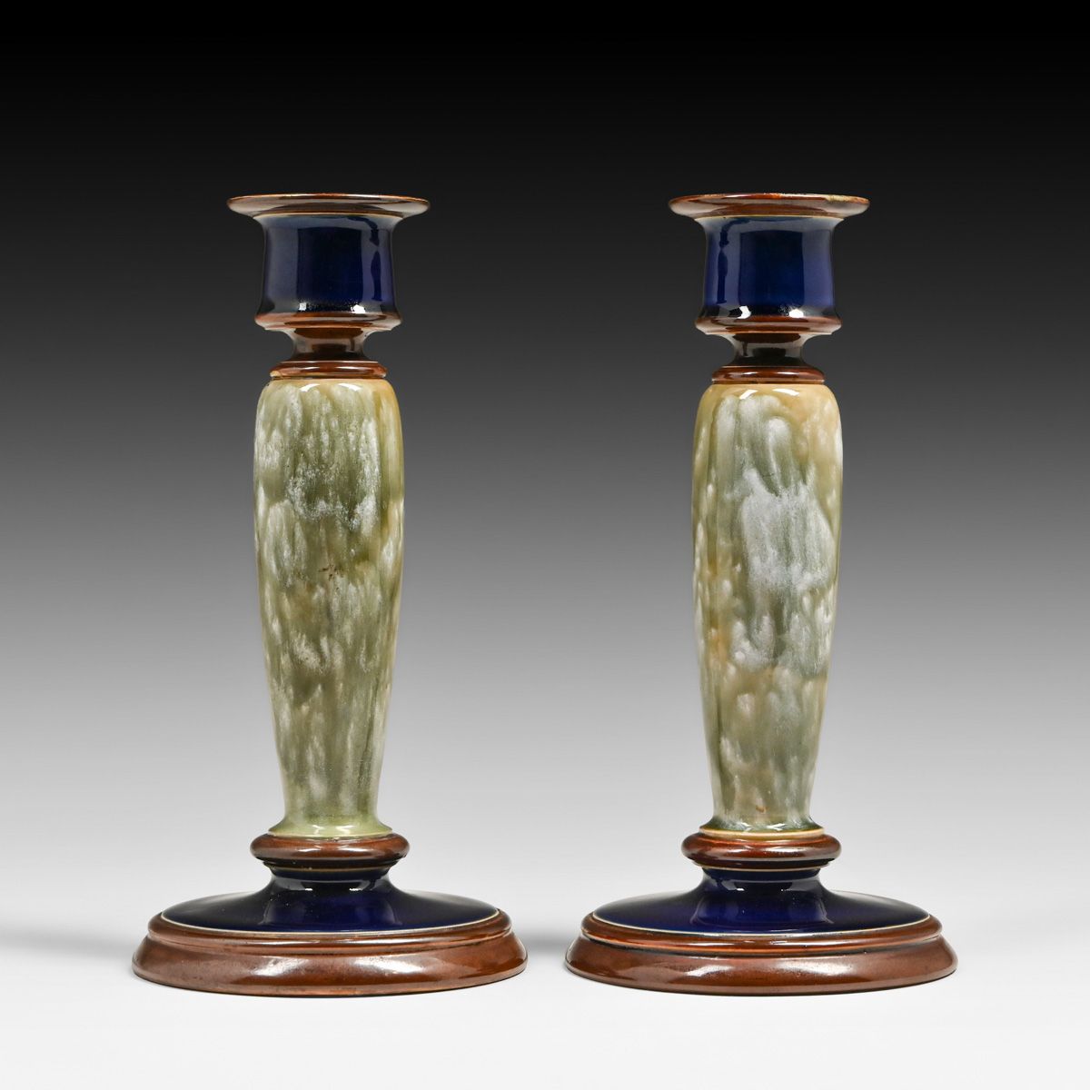 - Royal Doulton Lambeth Pair Candlesticks c1920s