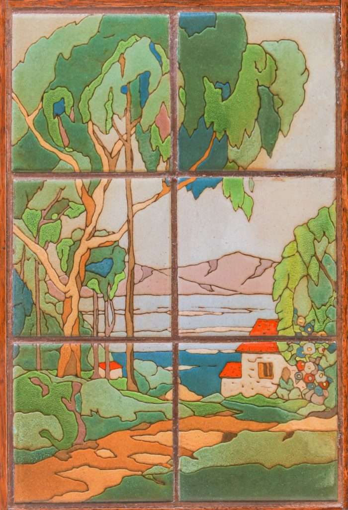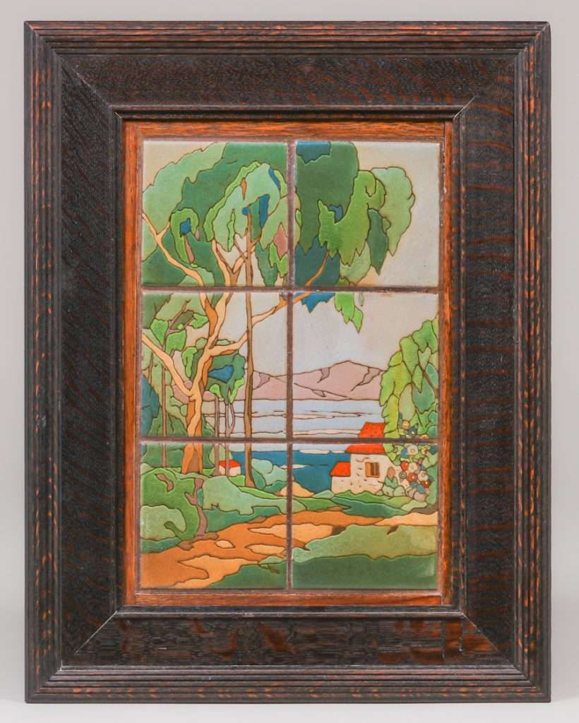 Taylor Six-Tile Scenic Mural c1920s. Originally a table-top, reframed in an old oak frame. Tiles in perfect condition. 18"h x 12"w. Oak frame 27.5"h x 21.25"w SOLD
