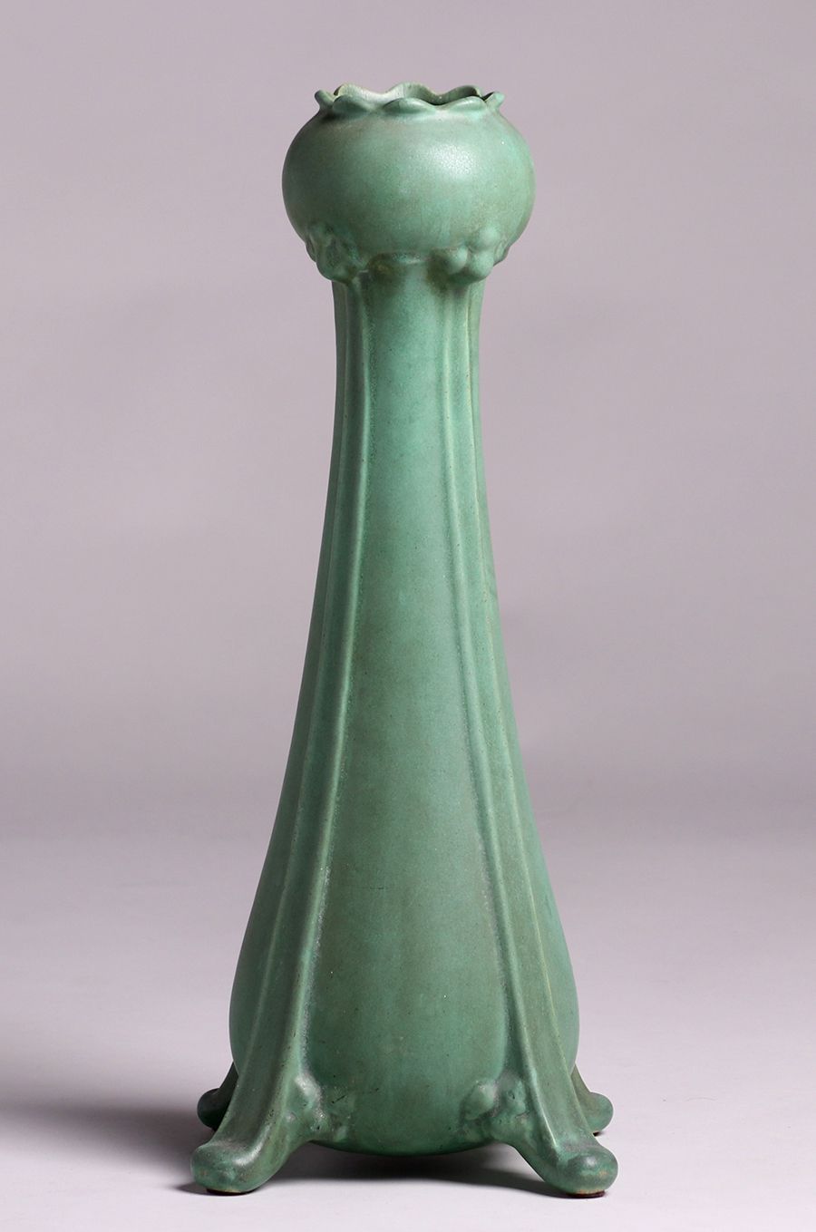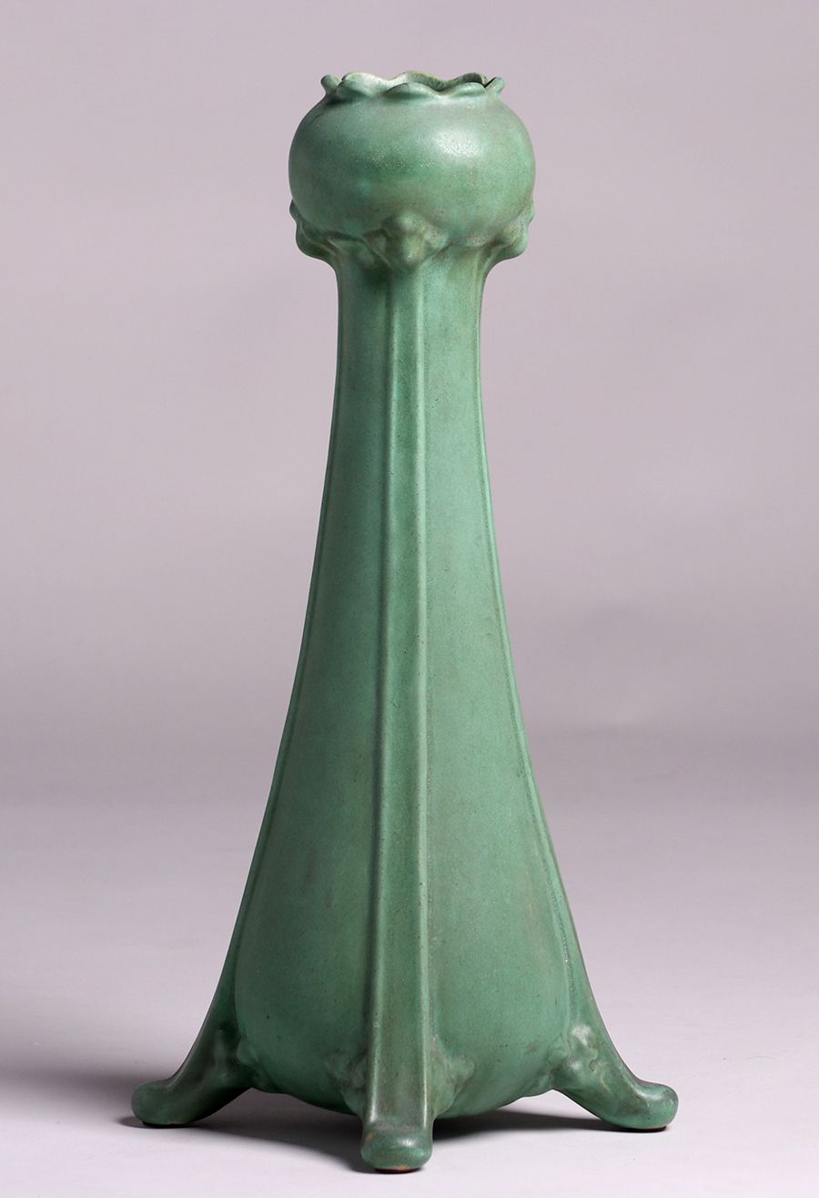 Huge Teco matte green floriform vase c1910. Signed. Perfect condition. 18.75"h x 7.25"d SOLD