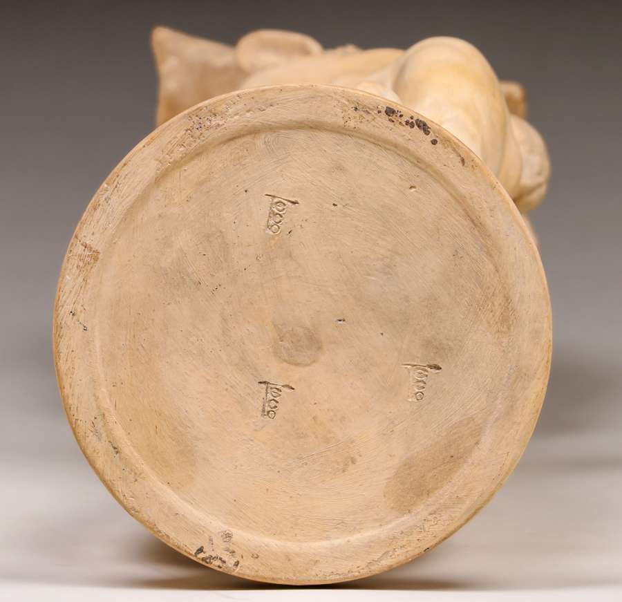 - Large Teco Pottery Bisque Vase Satyr & Nymph c1905