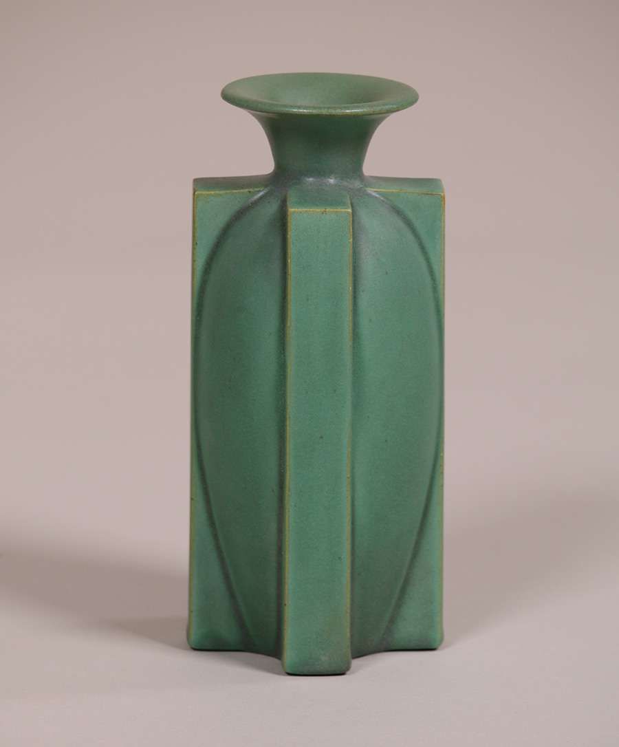 Rare Teco 4-Buttress Vase. Repaired. 7 3/8"h SOLD