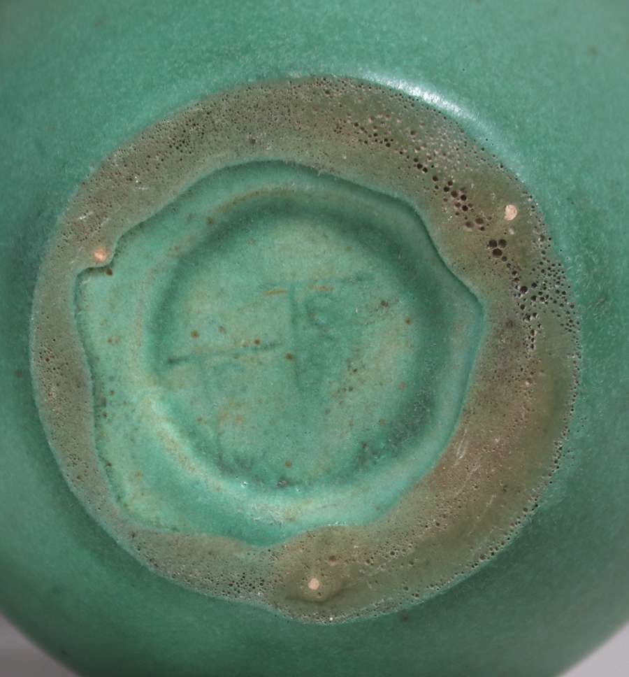 Small Teco Pottery matte green vase. Signed. Perfect condition. 3.75"h x 3"d SOLD
