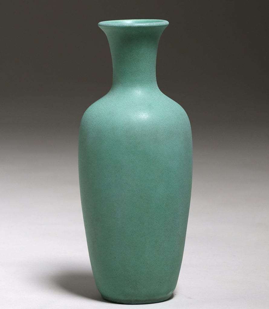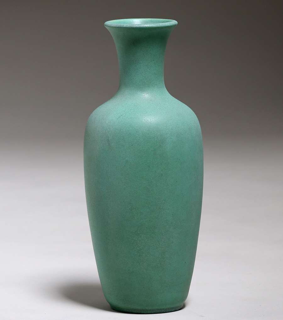 Tall Teco Pottery matte green baluster vase c1910. Signed. Perfect condition. 11.5"h x 4.5"d SOLD