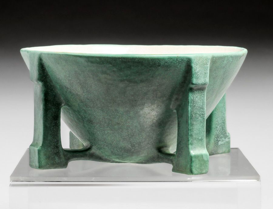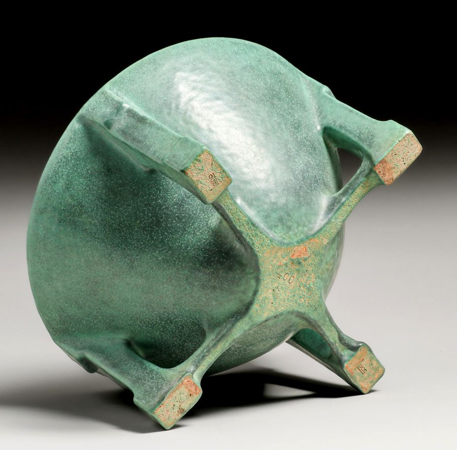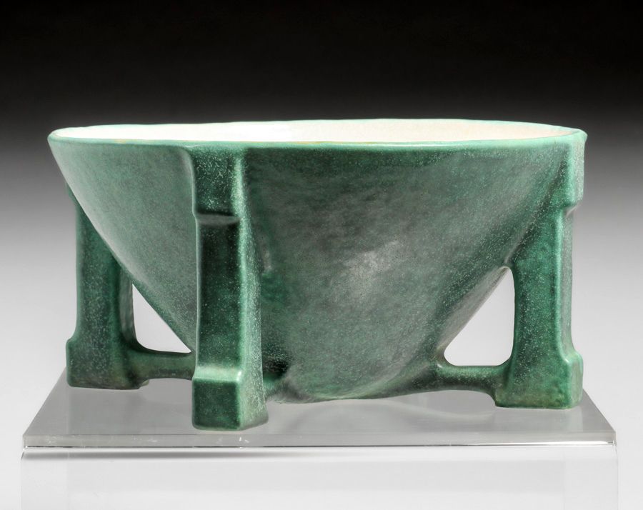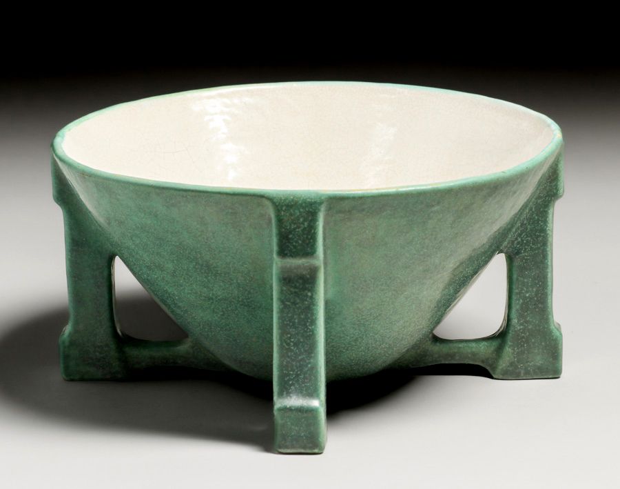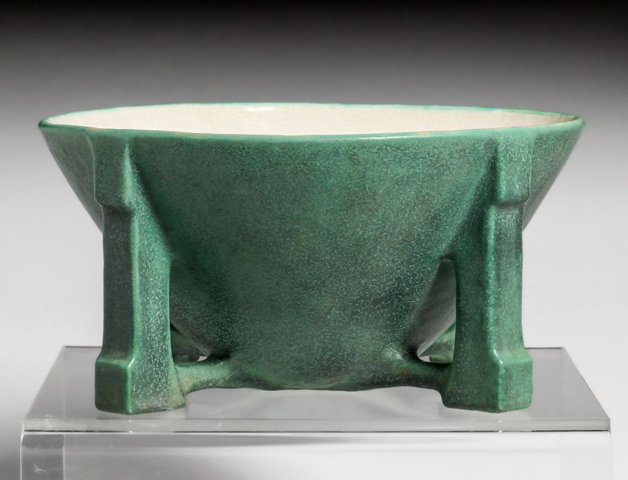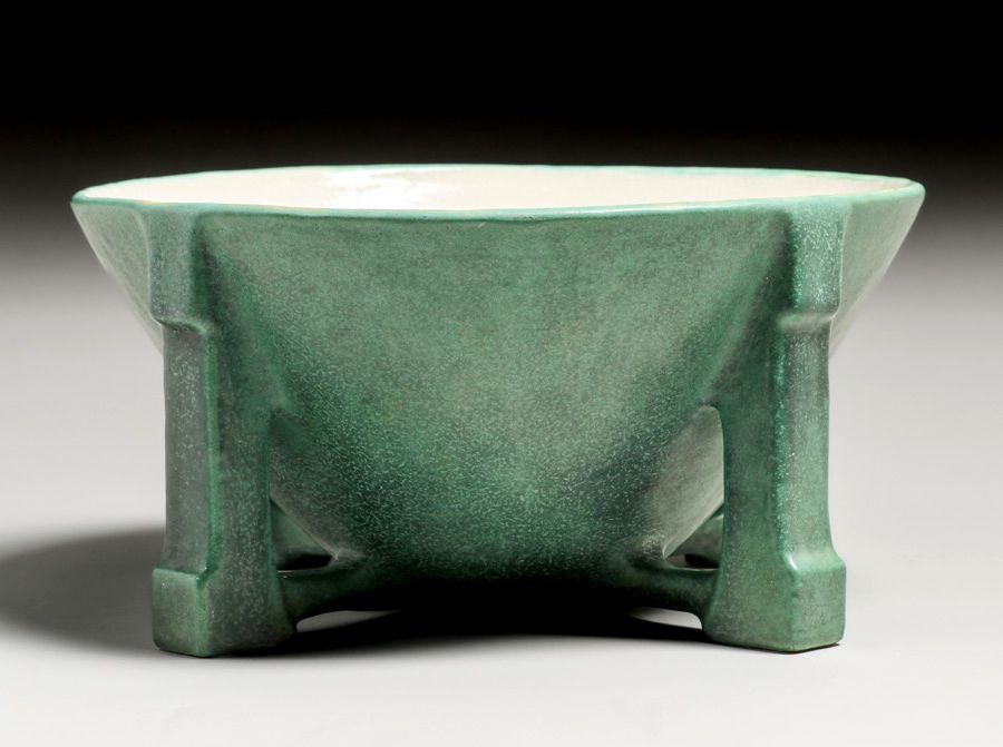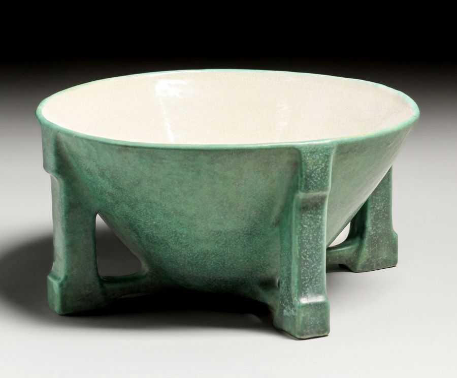 - Teco Pottery #400 Matte Green Buttress Bowl c1910