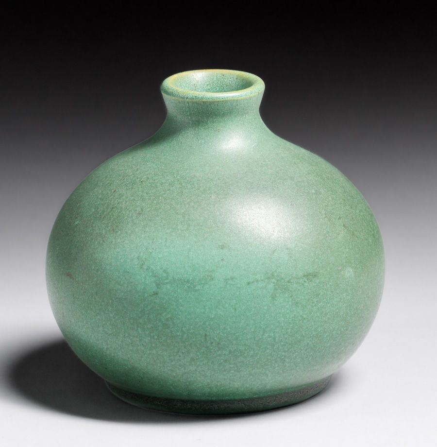 - Teco Pottery #52 Matte Green Bulbous Vase c1910
