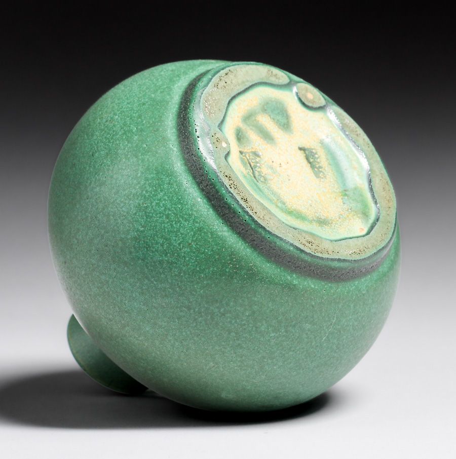 Teco Pottery #52 Matte Green Bulbous Vase c1910. Signed. Perfect condition. 4.5”h x 4.75”d SOLD