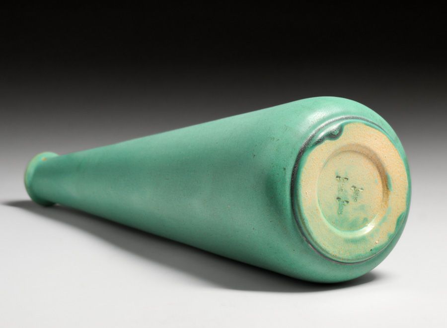 - Teco Pottery #72 Prairie School Matte Green Weed Vase c1910