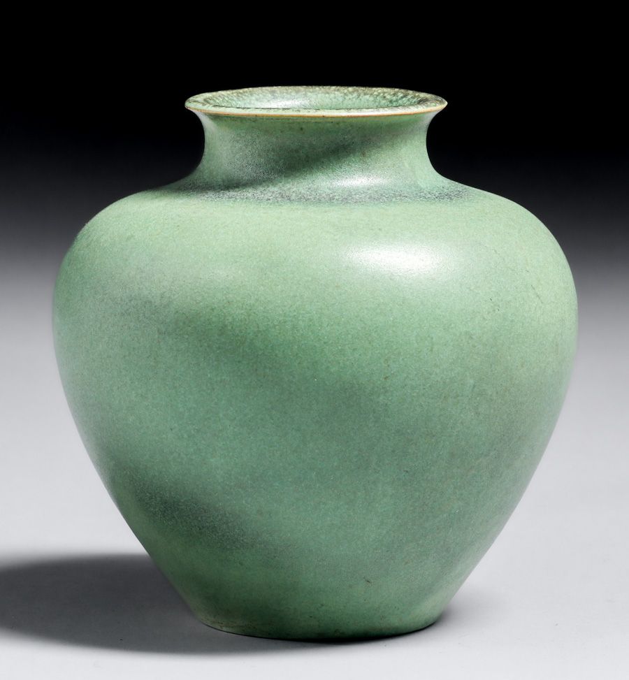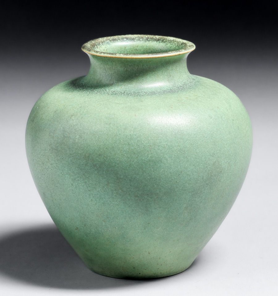 Teco Pottery #76 Matte Green Bulbous Vase c1910. Signed. Perfect condition. 5 58/"h x 5.25"d SOLD