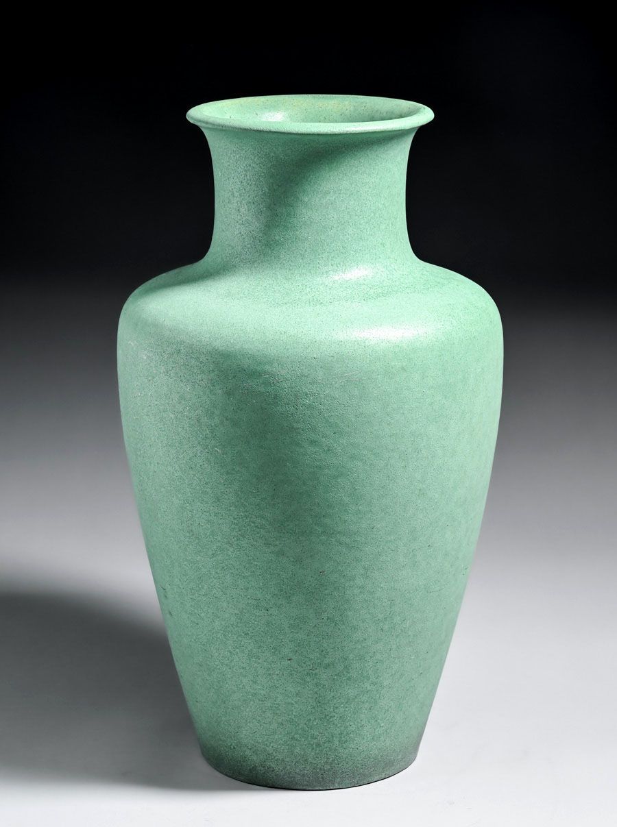 - Teco Pottery #G41 Monumental Matte Green Floor Vase c1910