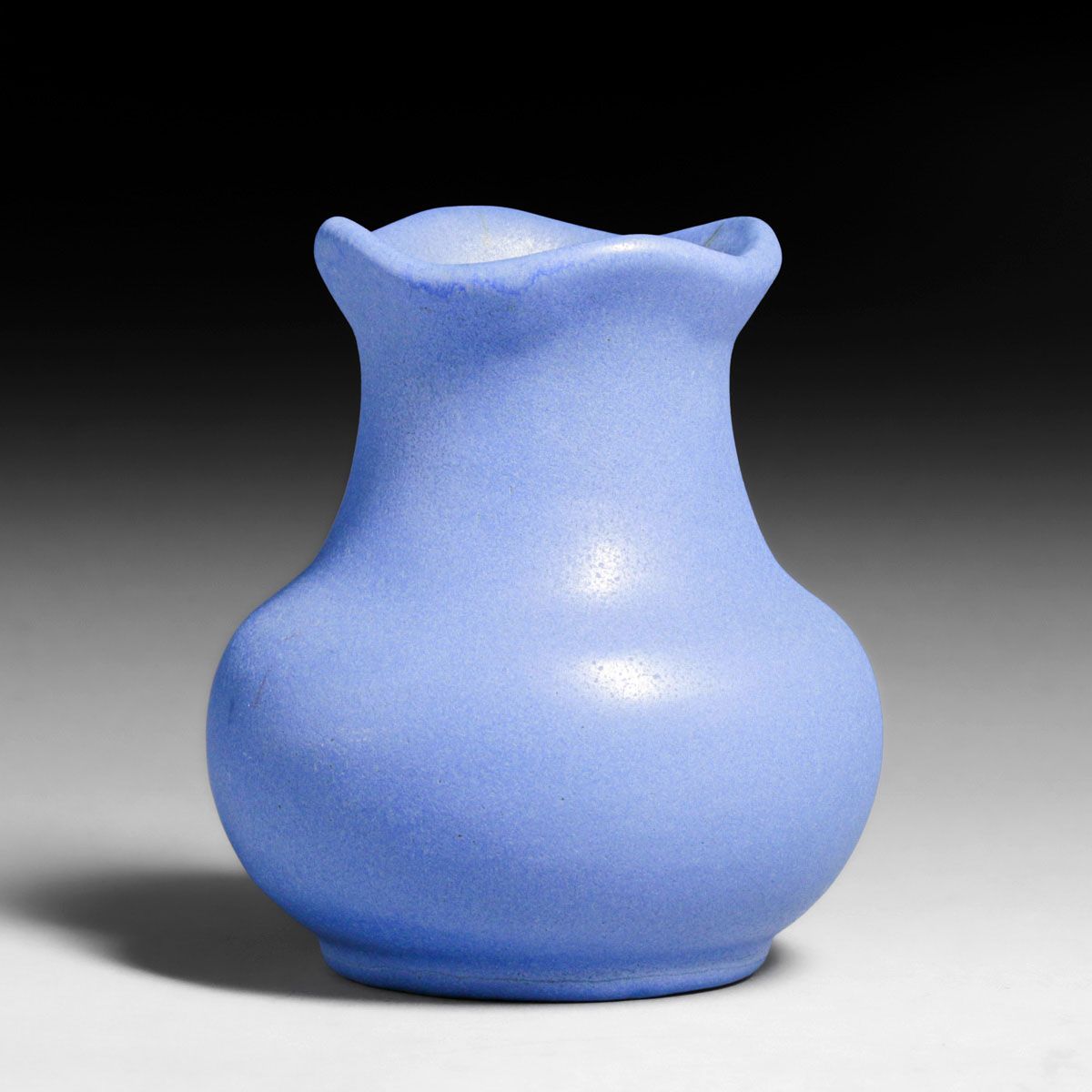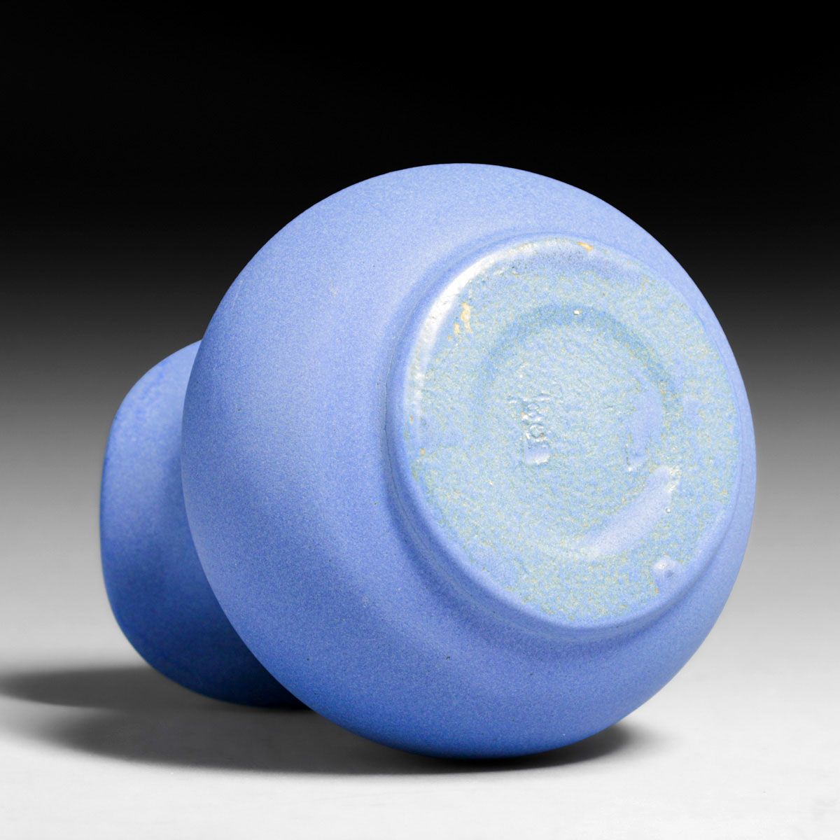 Teco Pottery Matte Blue Vase c1910. Signed. Perfect condition. 5"h x 4"d