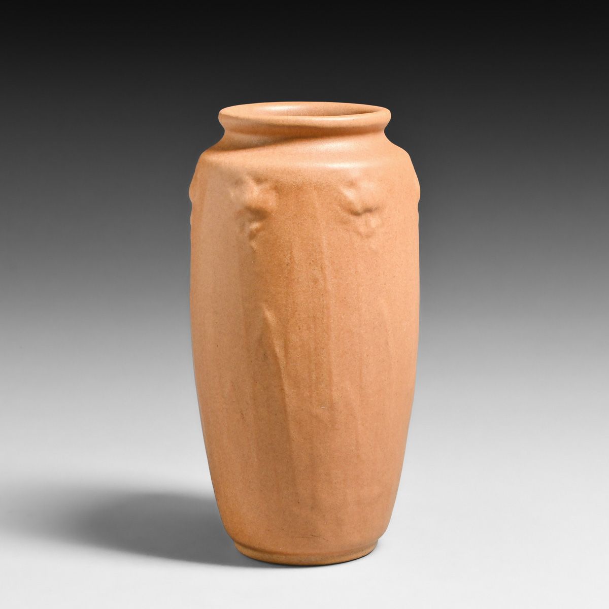 - Teco Pottery Matte Brown Daffodils Vase c1910