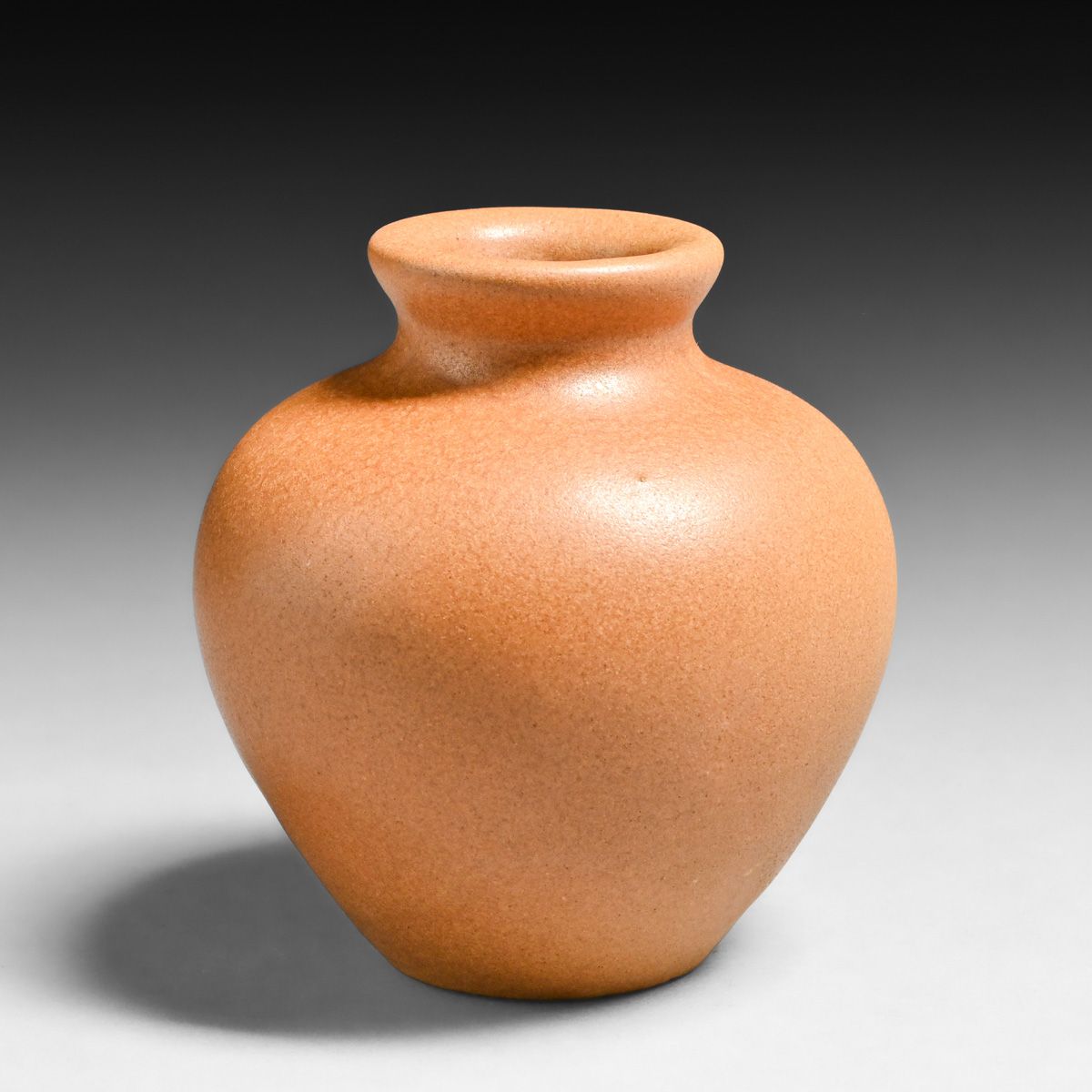 Teco Pottery Matte Brown Vase c1910. Signed. Perfect condition. 3 7/8"h x 3 7/8"d