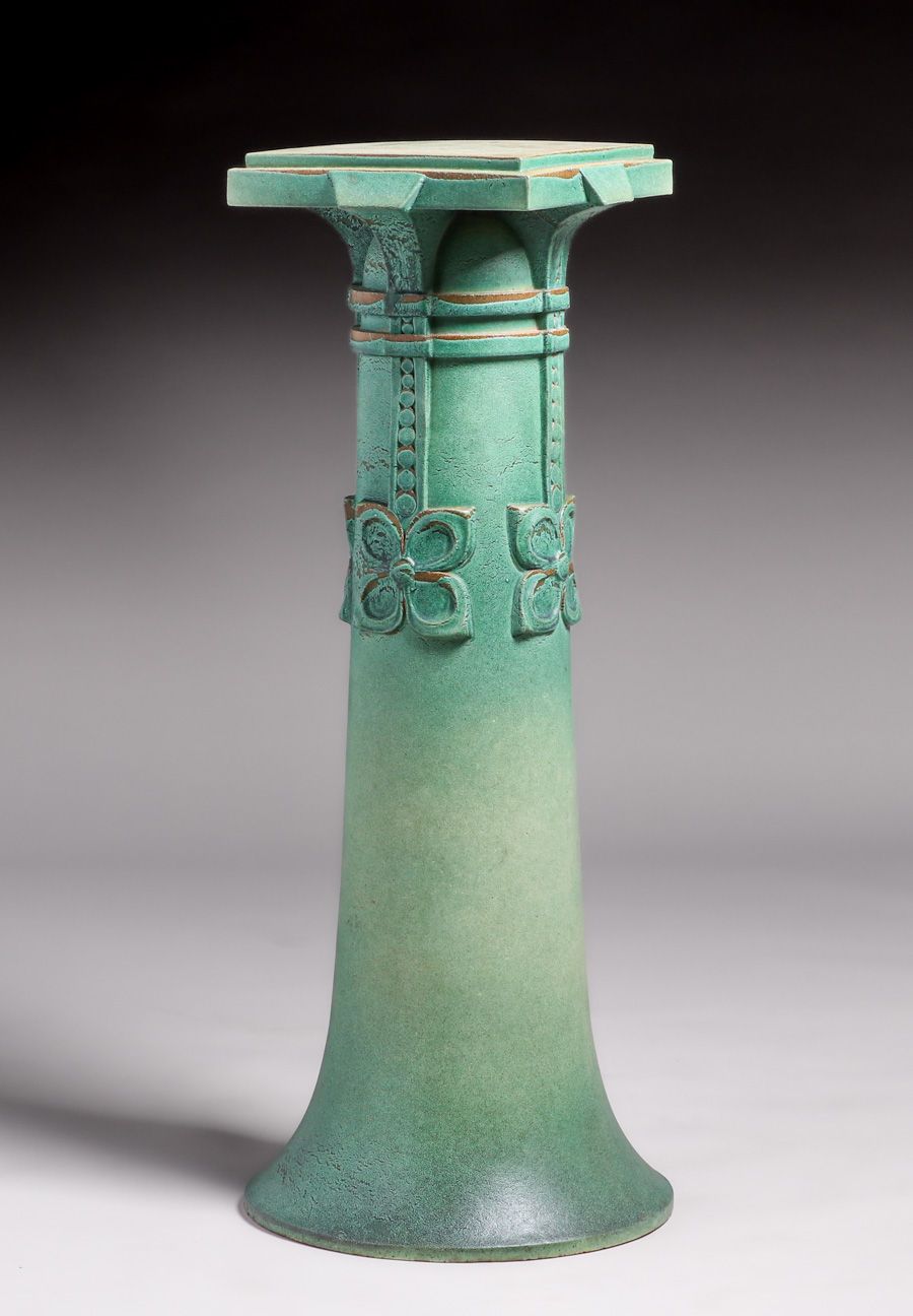 - Teco Pottery Matte Green Elmslie & Purcell Garden Pedestal c1915