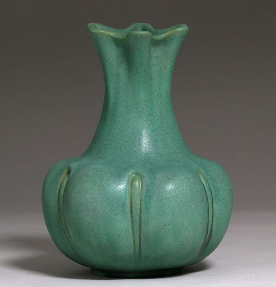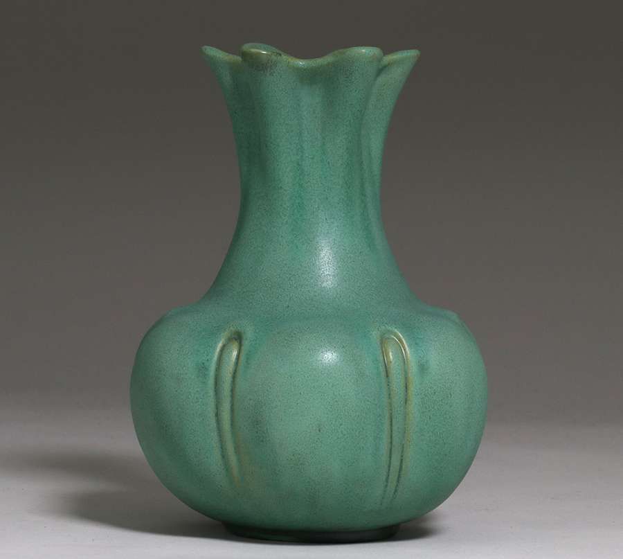 - Teco Pottery Matte Green Flared Squash Blossom Vase