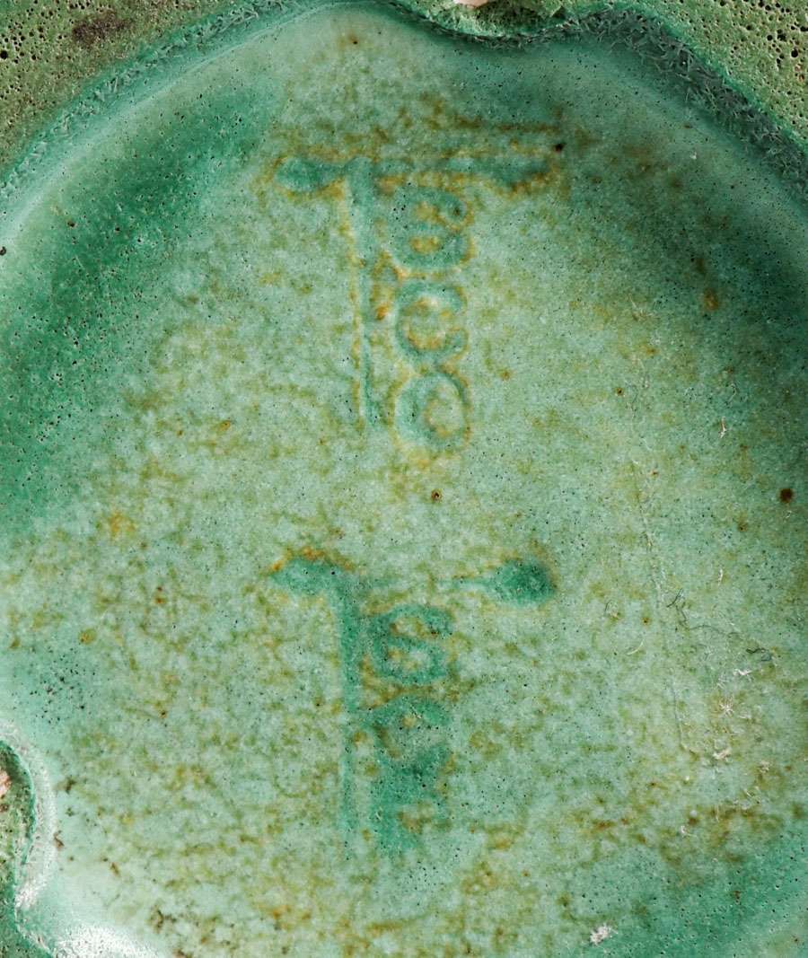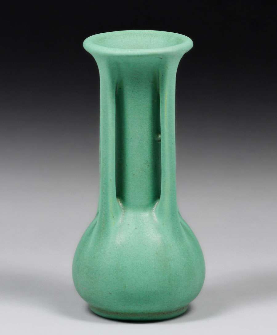 - Teco Pottery Matte Green Four-Handle Vase c1910