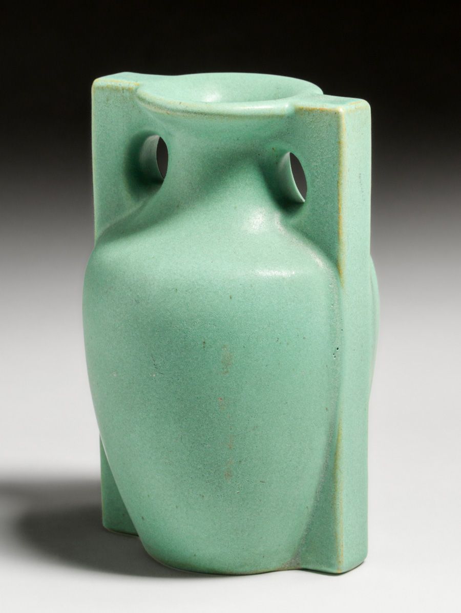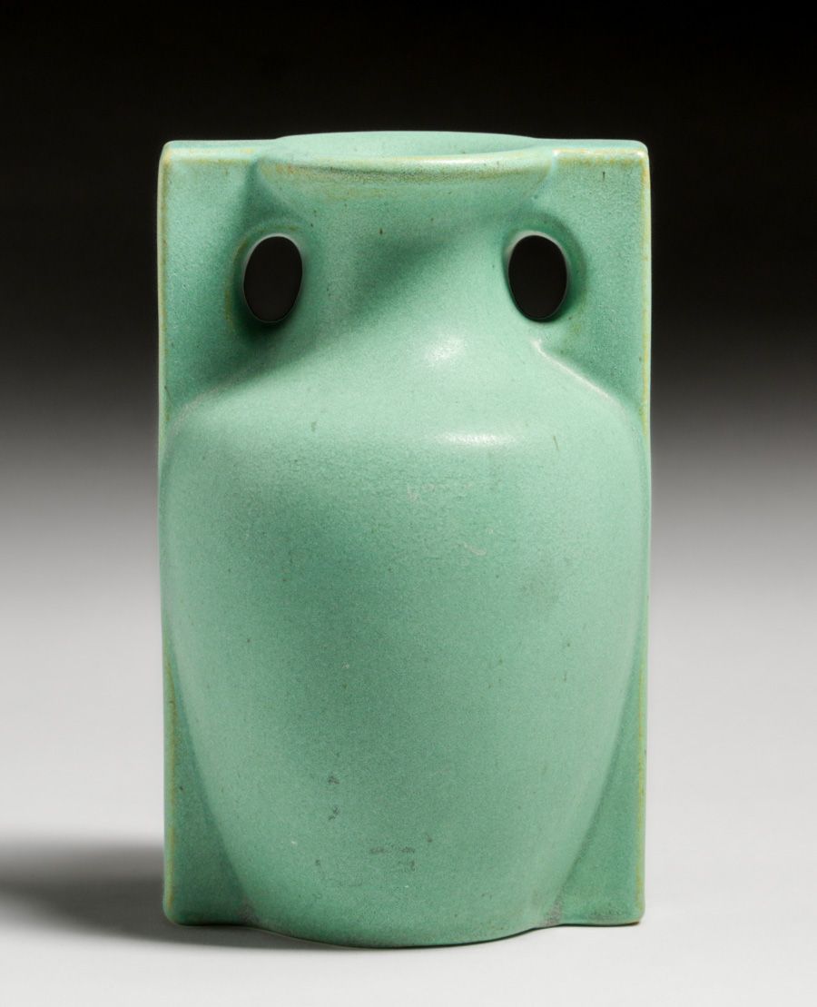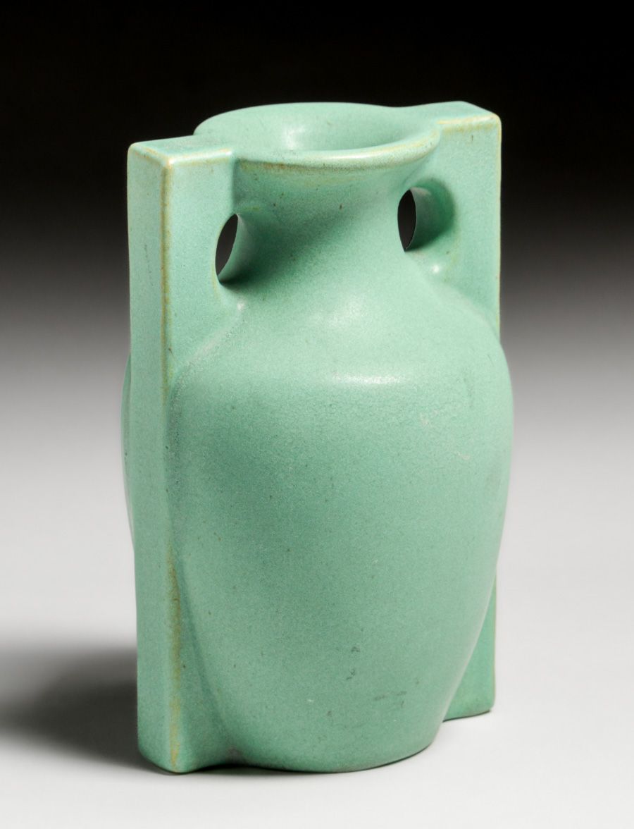 - Teco Pottery Matte Green Two-Handled Vase c1910