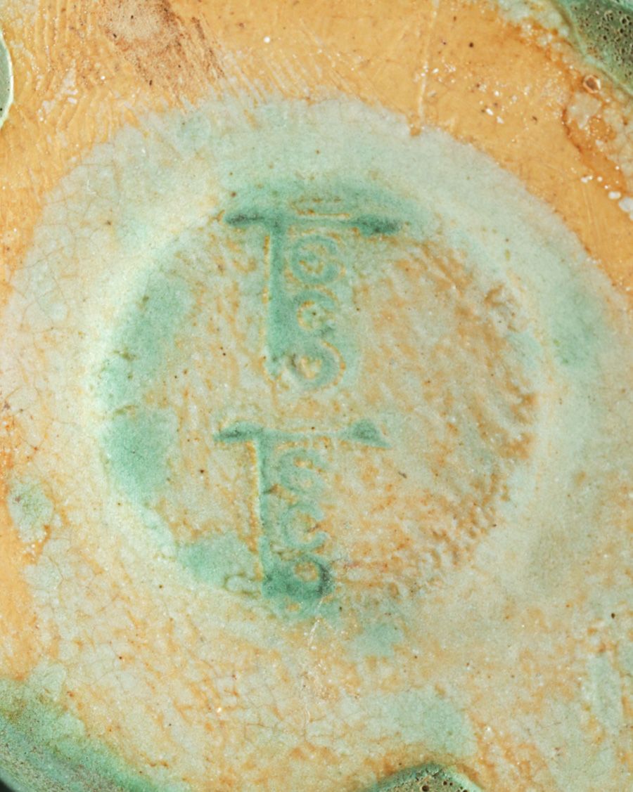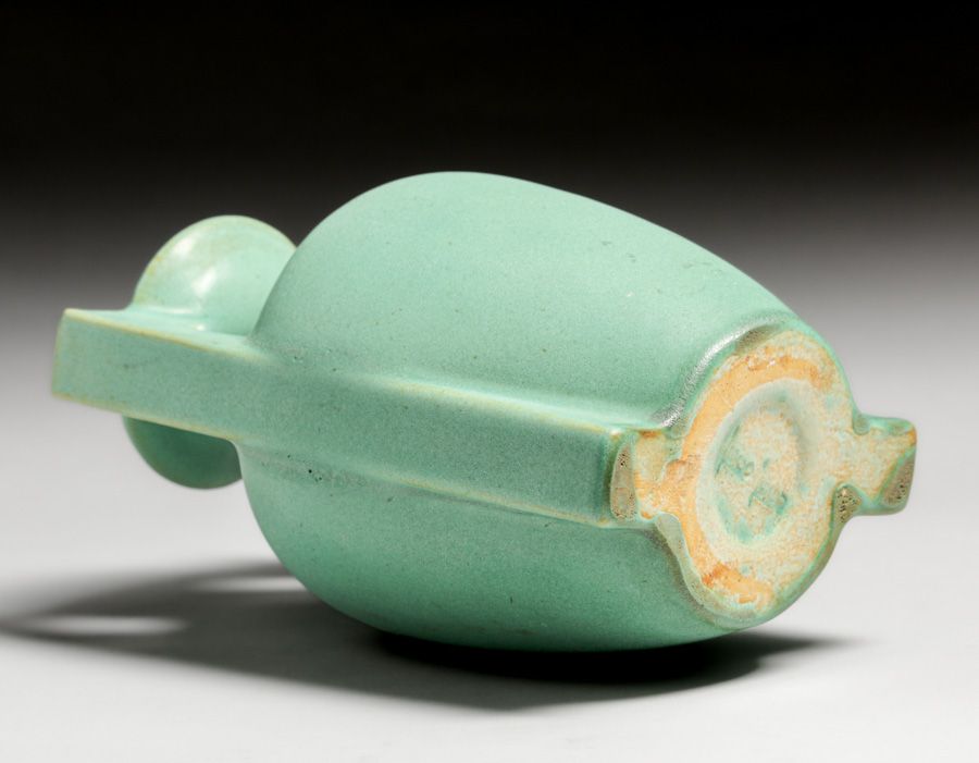 Teco Pottery Matte Green Two-Handled Vase c1910. Signed. Perfect condition. 7"h x 4.25"d SOLD