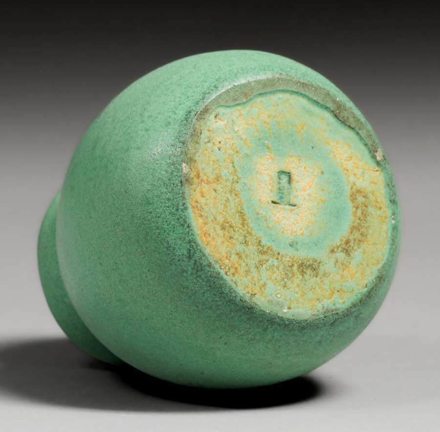 Teco Pottery Matte Green Vase c1910. Signed. Perfect condition. 4.5″ h x 4″ d SOLD