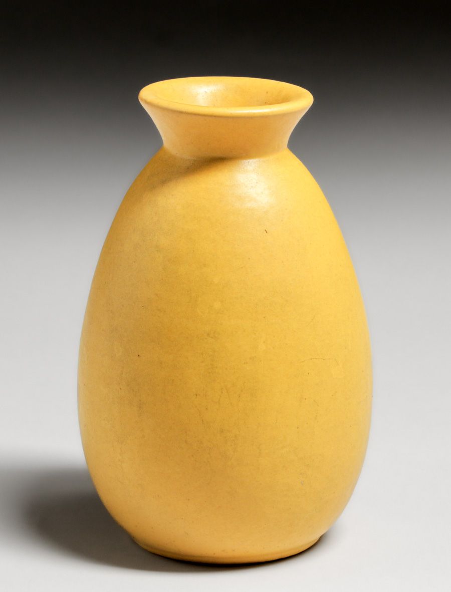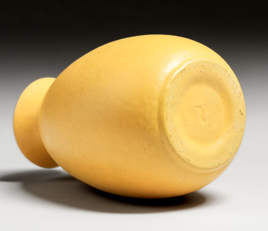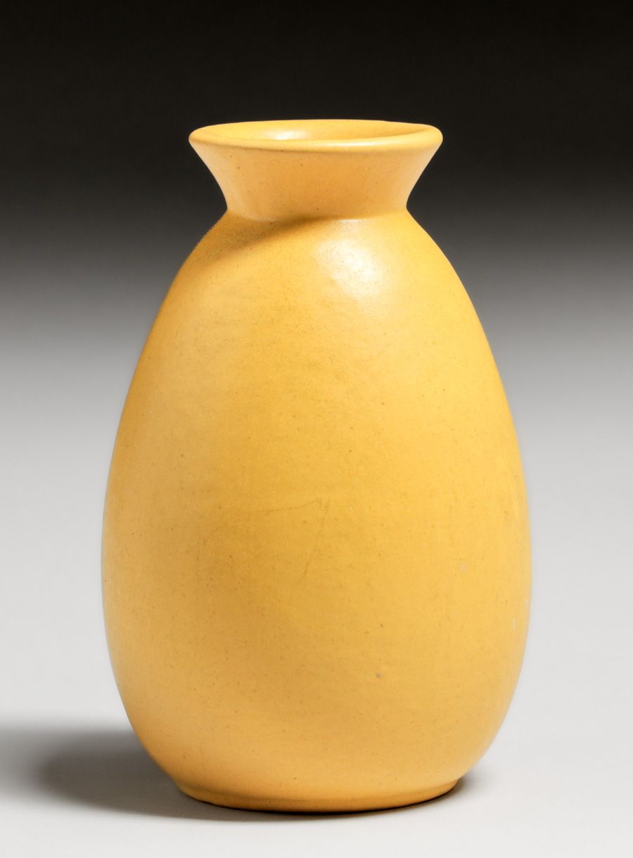 Teco Pottery Matte Yellow Vase c1910. Signed. Perfect condition. 6 5/8"h x 4"d SOLD