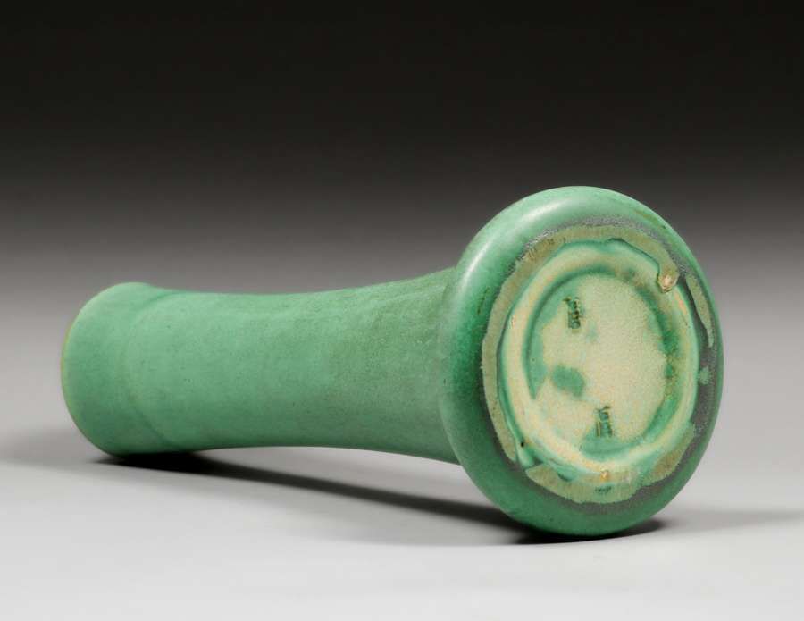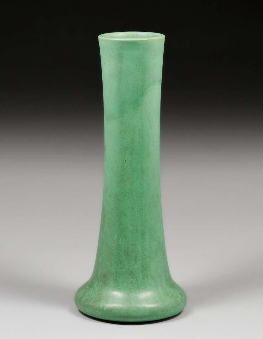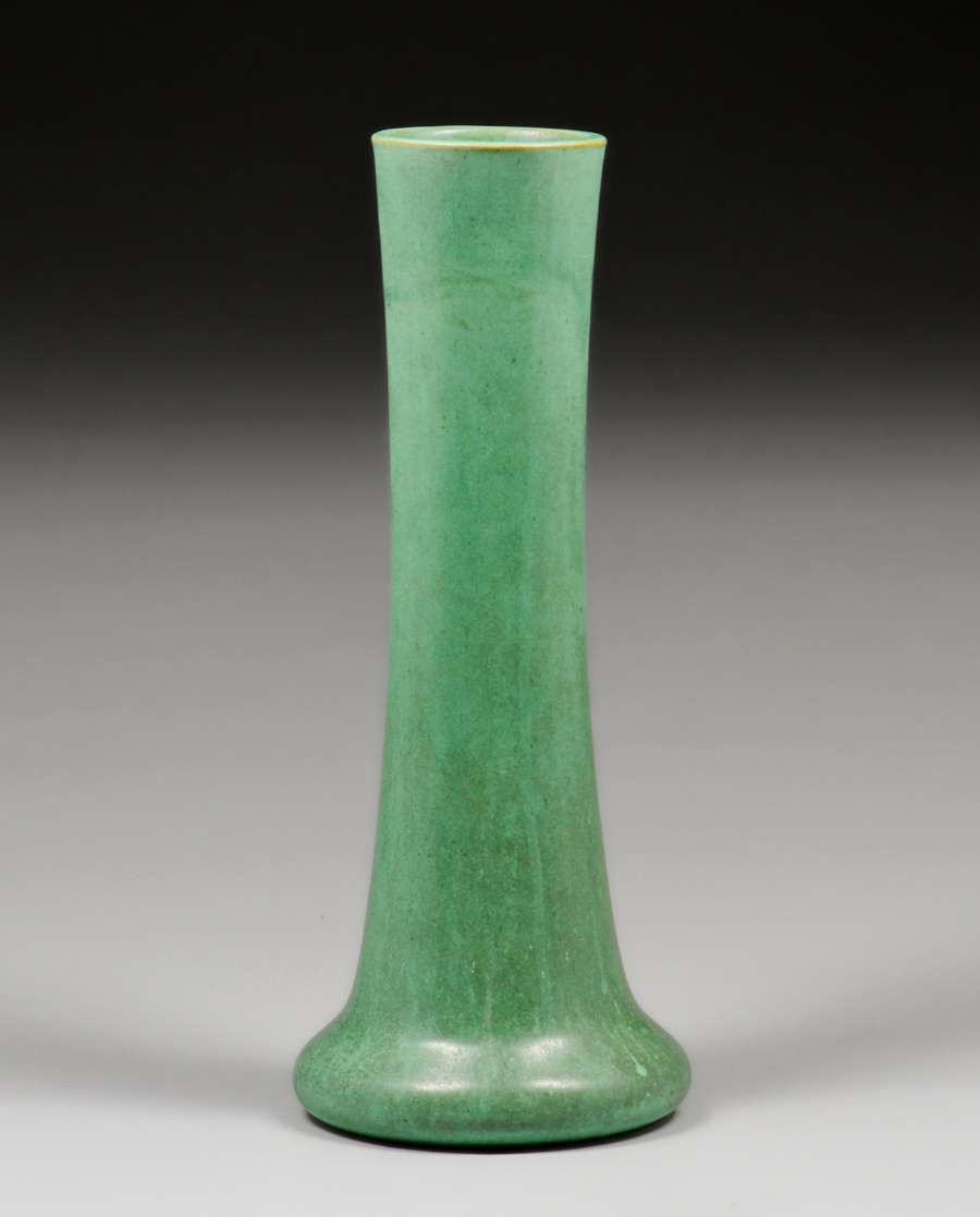 Teco Pottery Tall Matte Green Vase c1910. Signed. Perfect condition. 14"h x 5.5"d SOLD