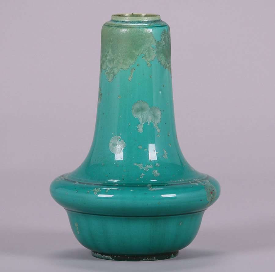 Thomas Gotham vase with an extraordinary green crystalline glaze. Signed "TG" on bottom. 11.5"h x 8"d. SOLD