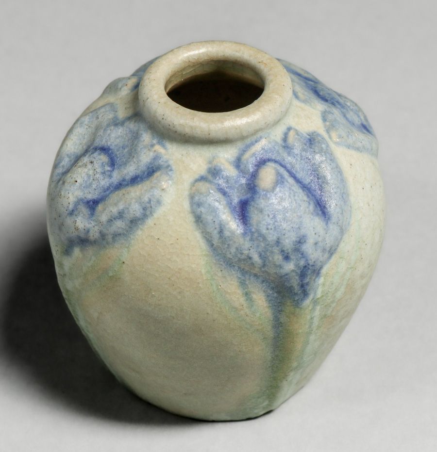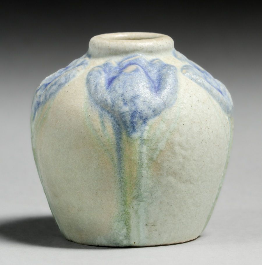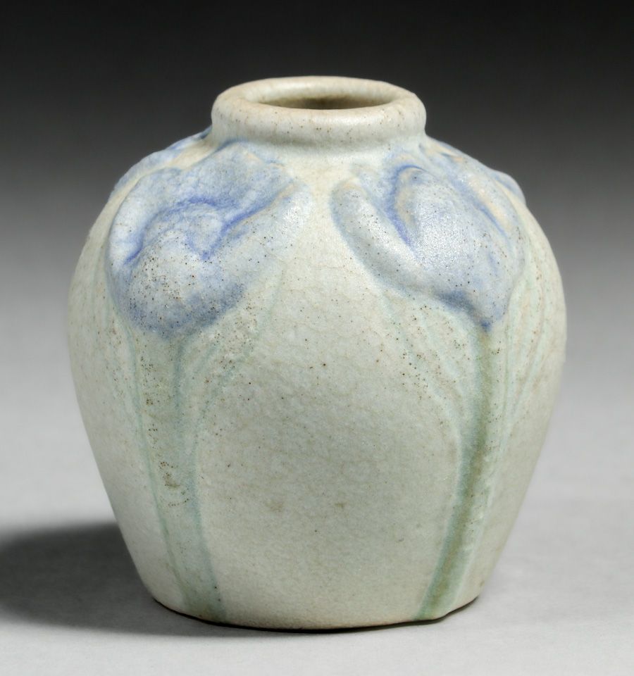 Early Van Briggle #114 Crocuses Vase 1906. Signed. perfect condition. 3"h x 2.75"d SOLD
