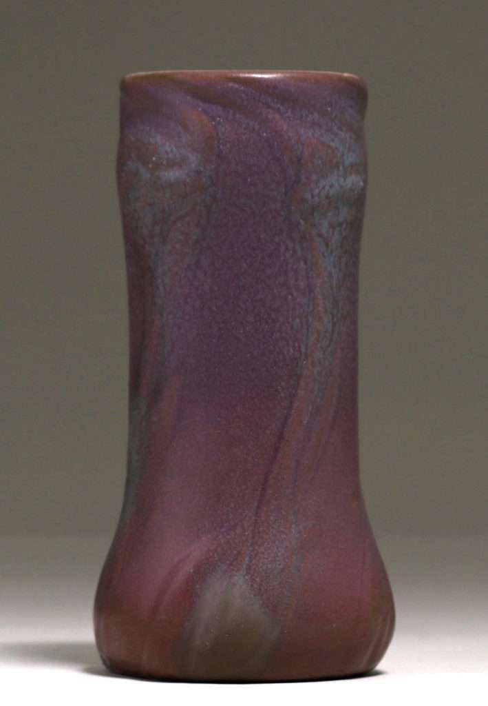 Early Van Briggle vase #296 with a dynamic purple matte glaze 1905. Provenance: Collection of Martin Eidelberg, New York. Perfect condition. 7.25"h x 3.25"d SOLD