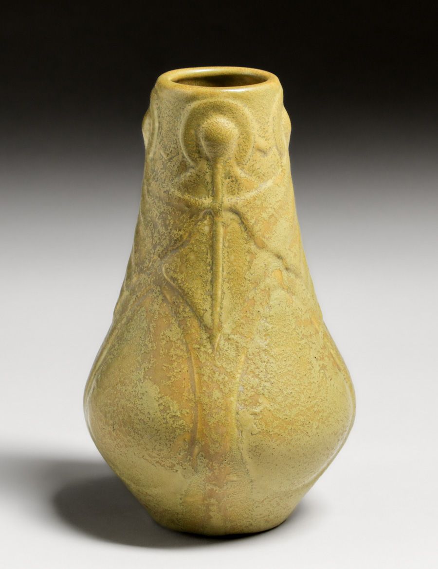 - Early Van Briggle Matte Glazed Peacock Feather Vase 1904