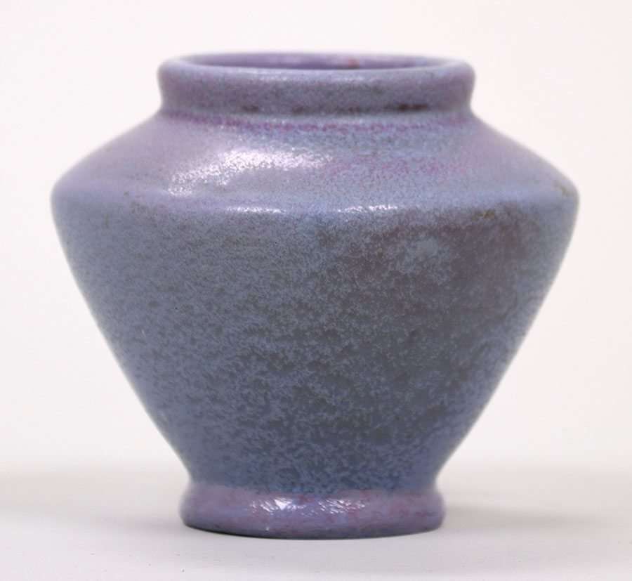 Early Van Briggle 1905 matte purple vase. Signed. Perfect condition. 4"h x 4.25"d SOLD