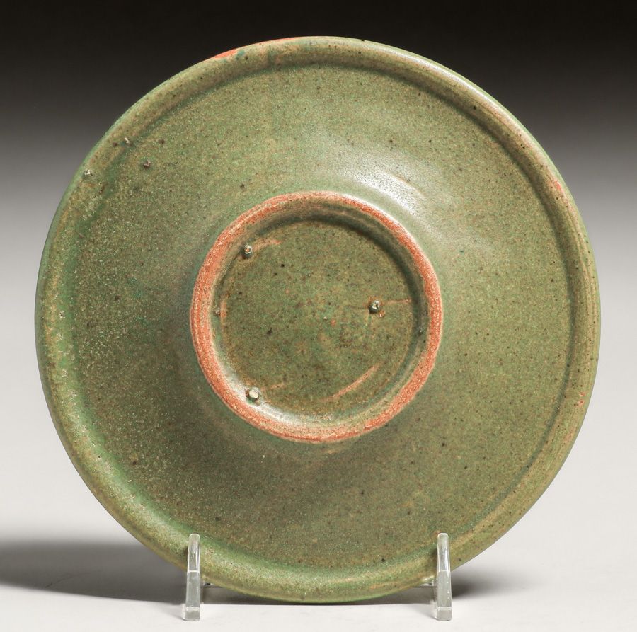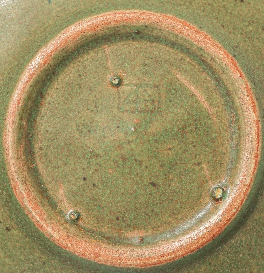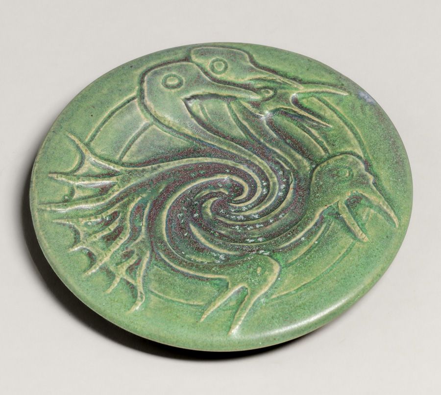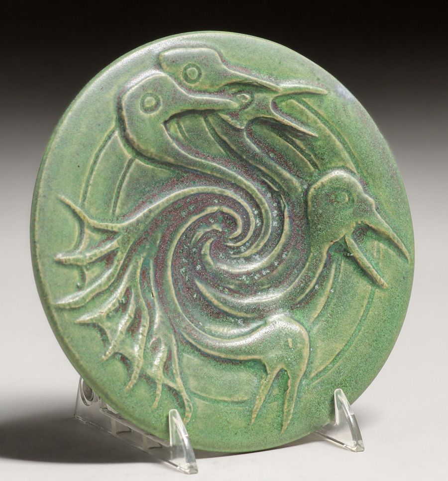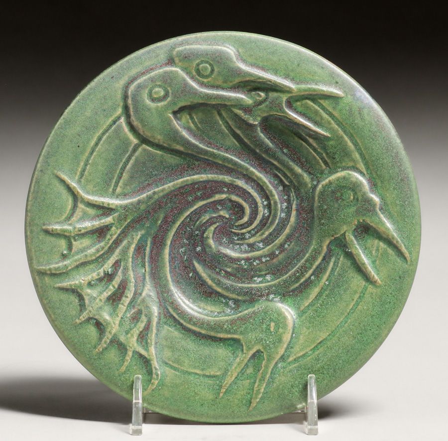 Early Van Briggle Spiral Stork Plate c1908-1911. Signed. Perfect condition. 6″d $1800