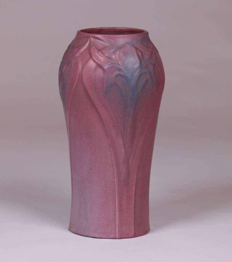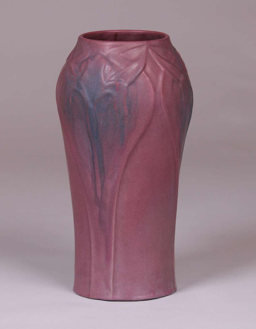 Huge 1916 Van Briggle Vase. Incised AA mark and 1916. Professional restoration to kiln kiss on side. 16.5"h x 8"d SOLD