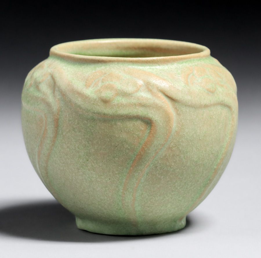 Van Briggle #695 Spherical Vase c1908-1911. Signed. Perfect condition. 3 5/8"h x 4.5"d SOLD
