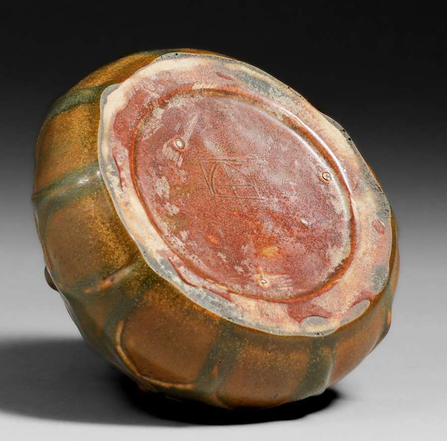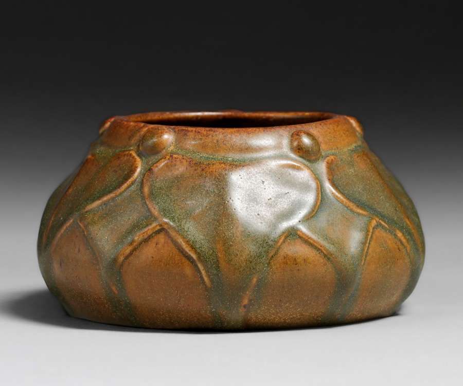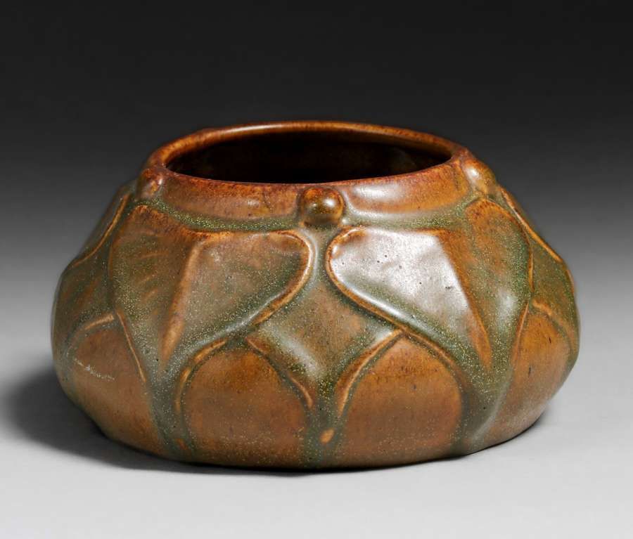 Van Briggle #858 Lily Pad Bowl 1915. One of the nicest Van Briggle mid-teens bowls we have ever seen. Signed. Perfect condition. 6”d x 3.75"h SOLD