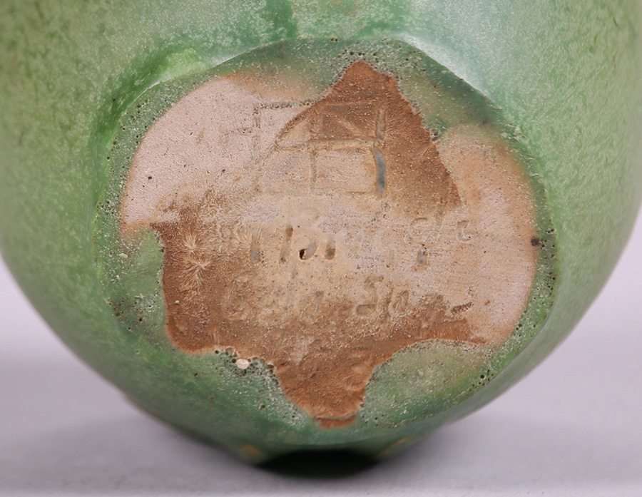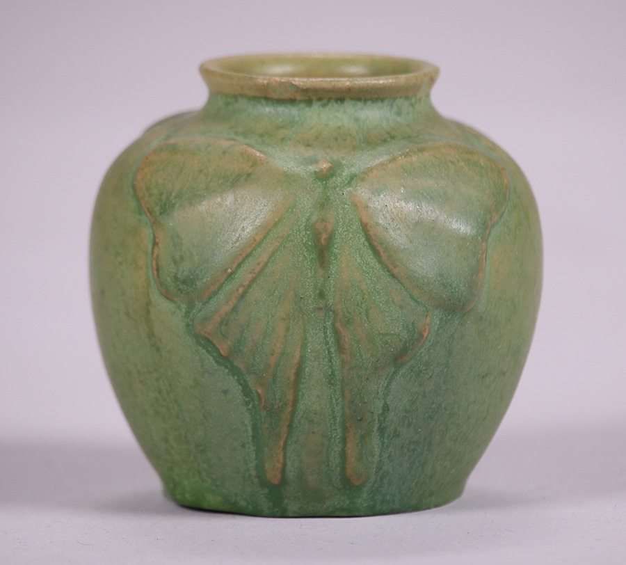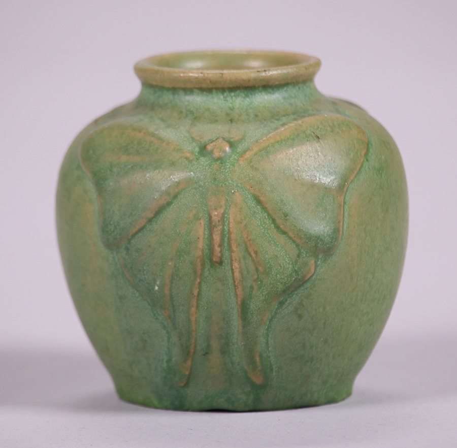 - Van Briggle Matte Green Moth Vase c1908-1911
