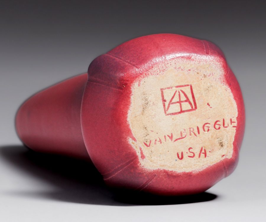 Van Briggle Matte Red Vase c1920s. Signed with USA which dates this to 1922-1926. Perfect condition. 8.25"h x 3.5"d SOLD