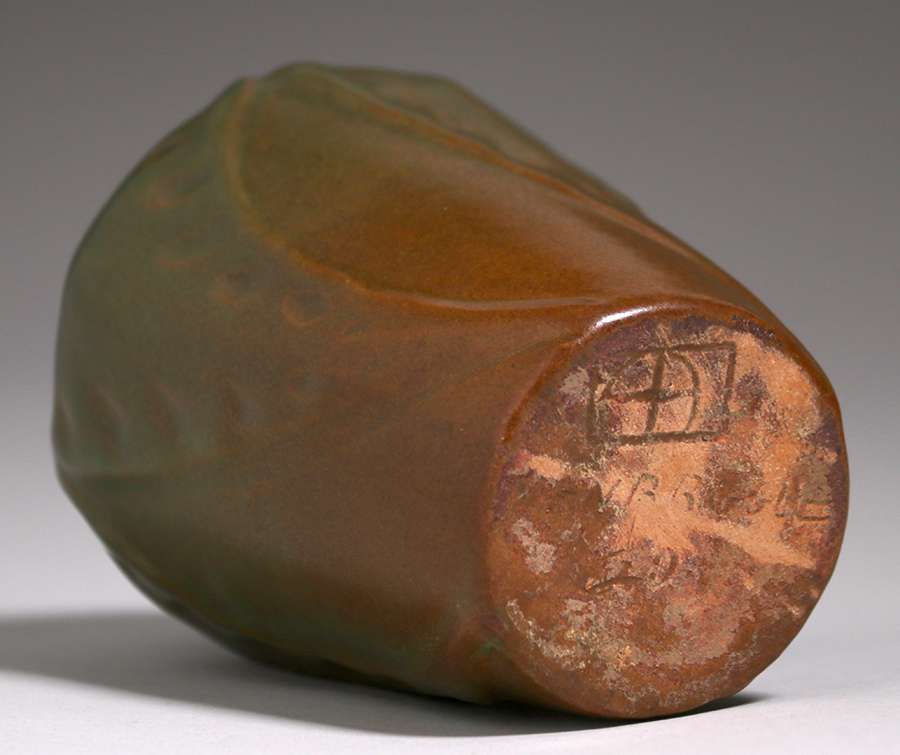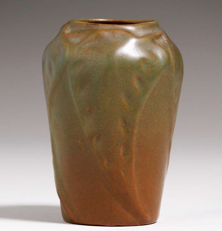 Van Briggle vase with a Mountain Crag Green glaze dated 1920. Perfect condition. 5.25"h x 3.5"d SOLD