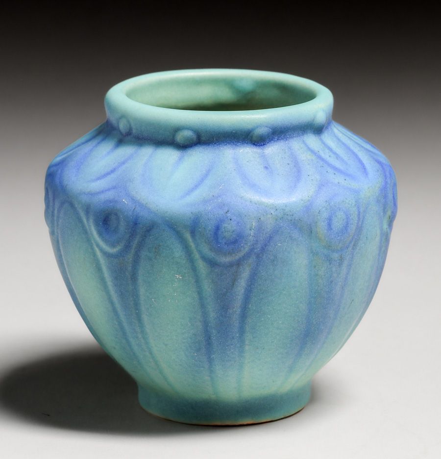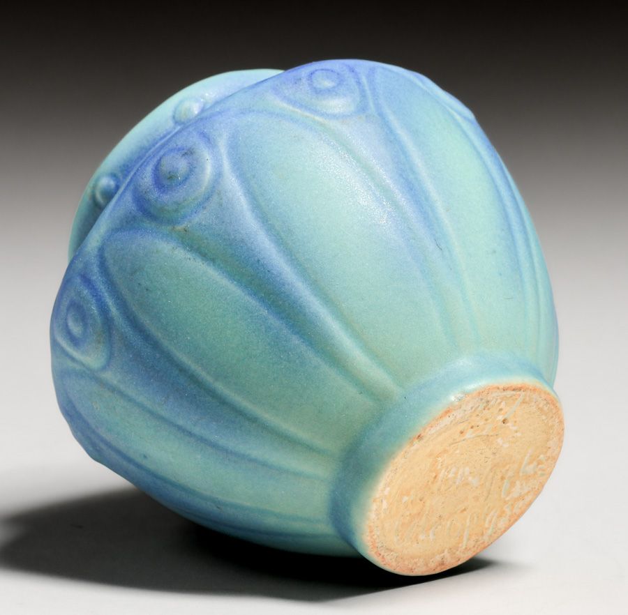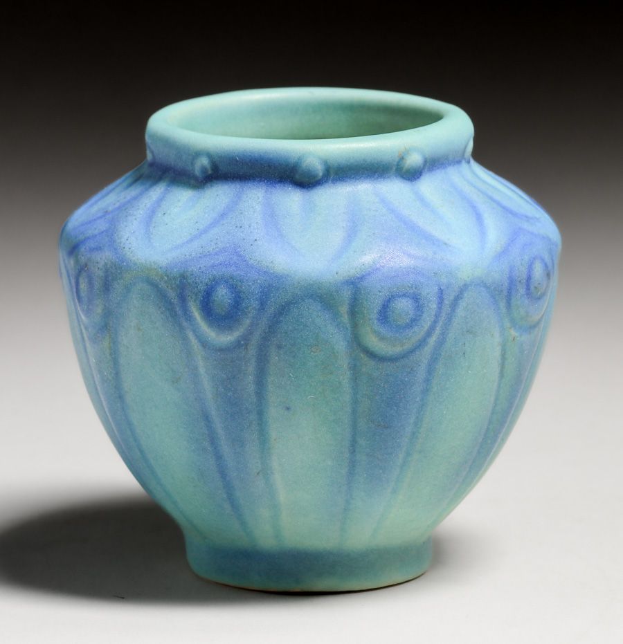 Van Briggle Turquoise Blue Vase c1920s. Signed. Perfect condition. 4.25"d x 4"h SOLD