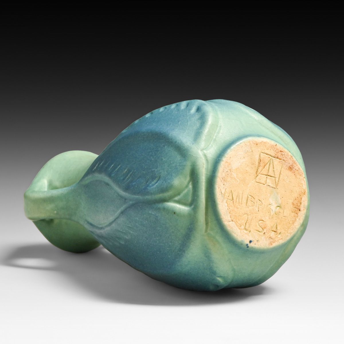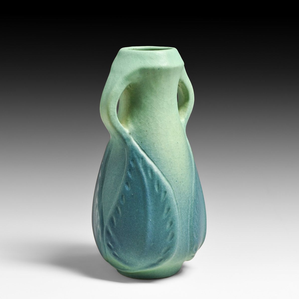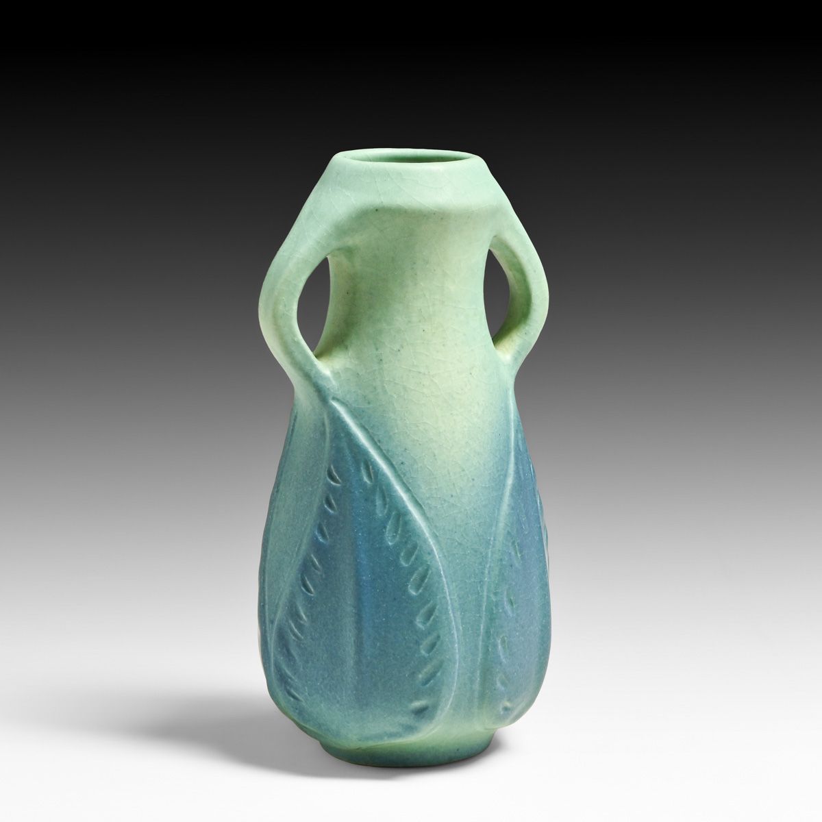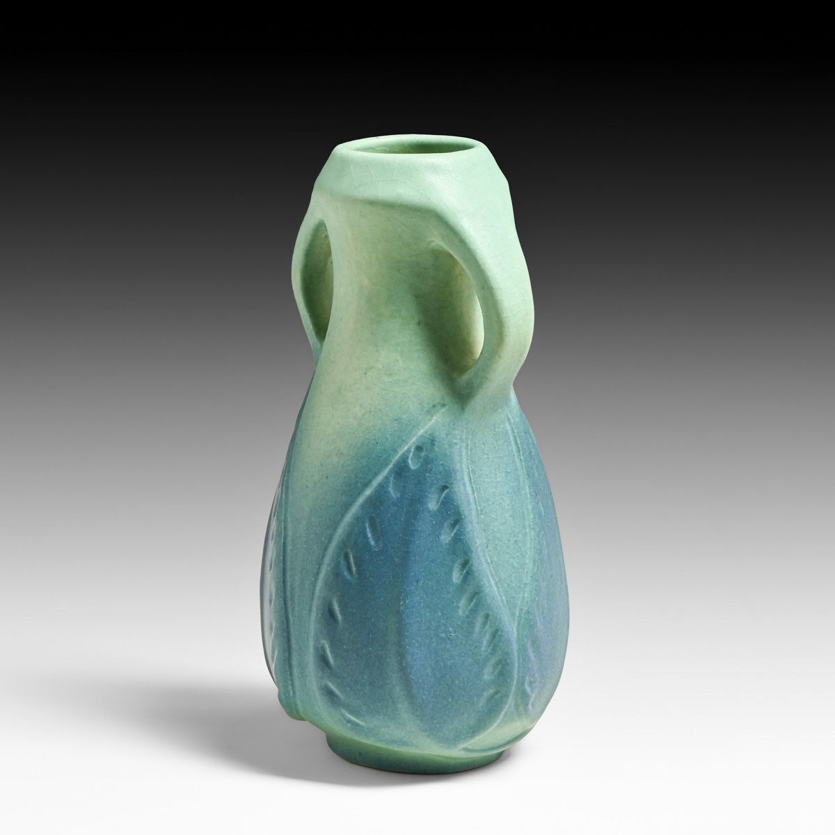 - Van Briggle #860 Matte Blue Two-Handled Vase c1922-1926