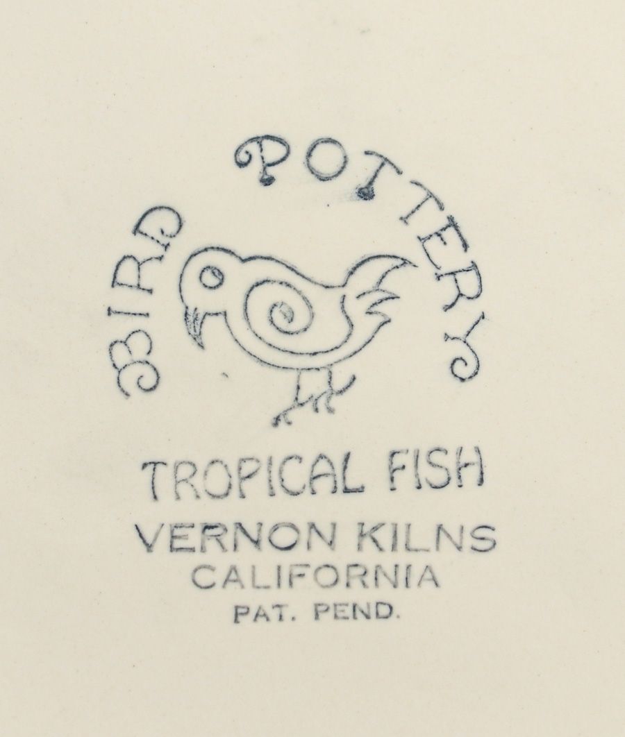 Vernon Kilns Rare Angel Fish Plate c1935-1937. From the “Bird Pottery” line by Harry Bird. Signed. Perfect condition. 10.5"d $950