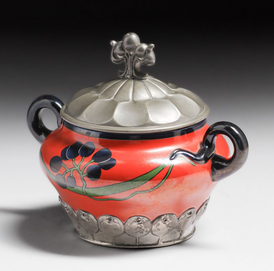 - Villeroy & Boch – Orivit Pewter Art Nouveau Overlay Two-Handled Sugar c1900s