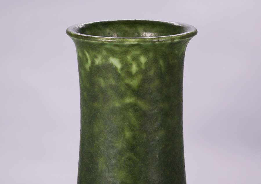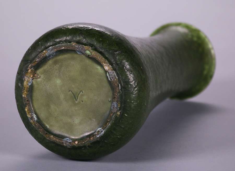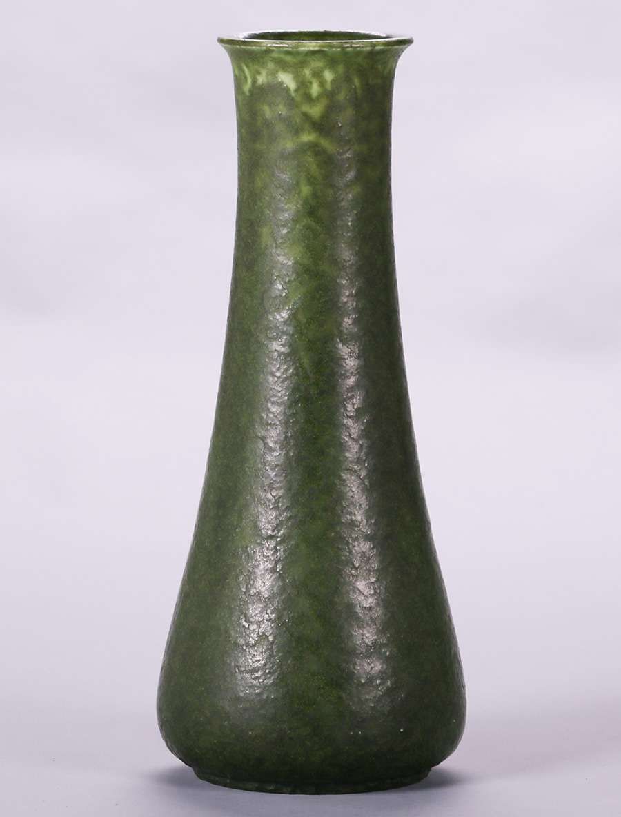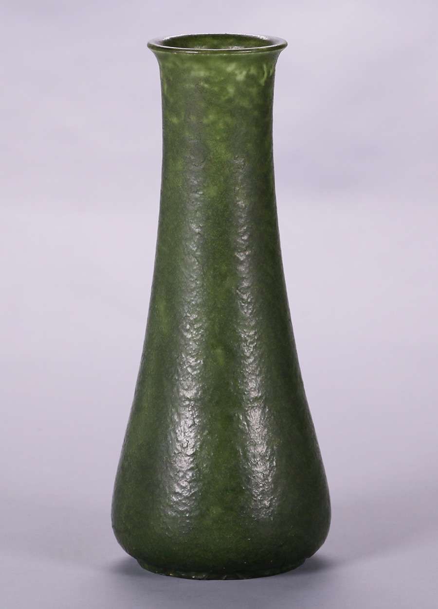 Tall Volkmar Pottery matte green vase. Signed. A couple of glaze bubble bursts at base, otherwise perfect condition. 15.25"h x 6.25" SOLD
