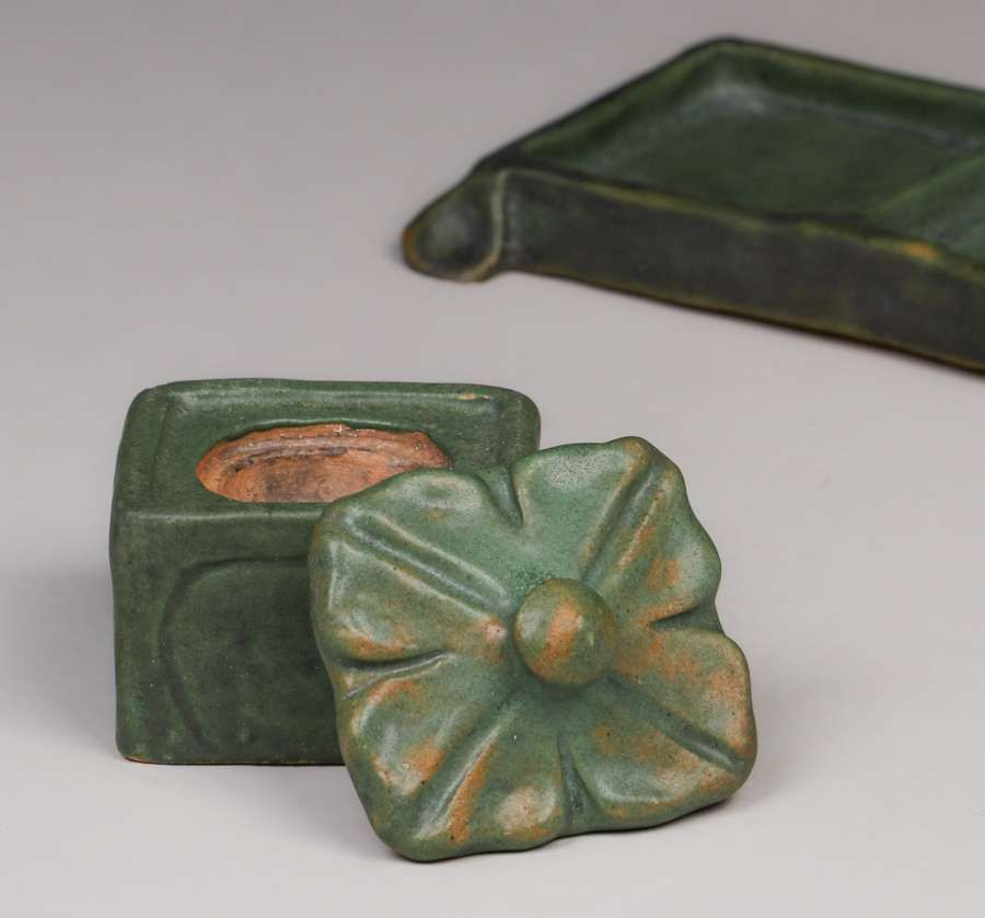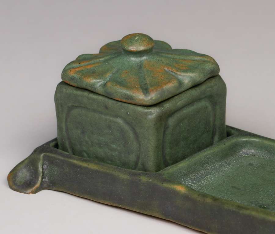 - Volkmar Pottery Pen Tray Inkwell c1910