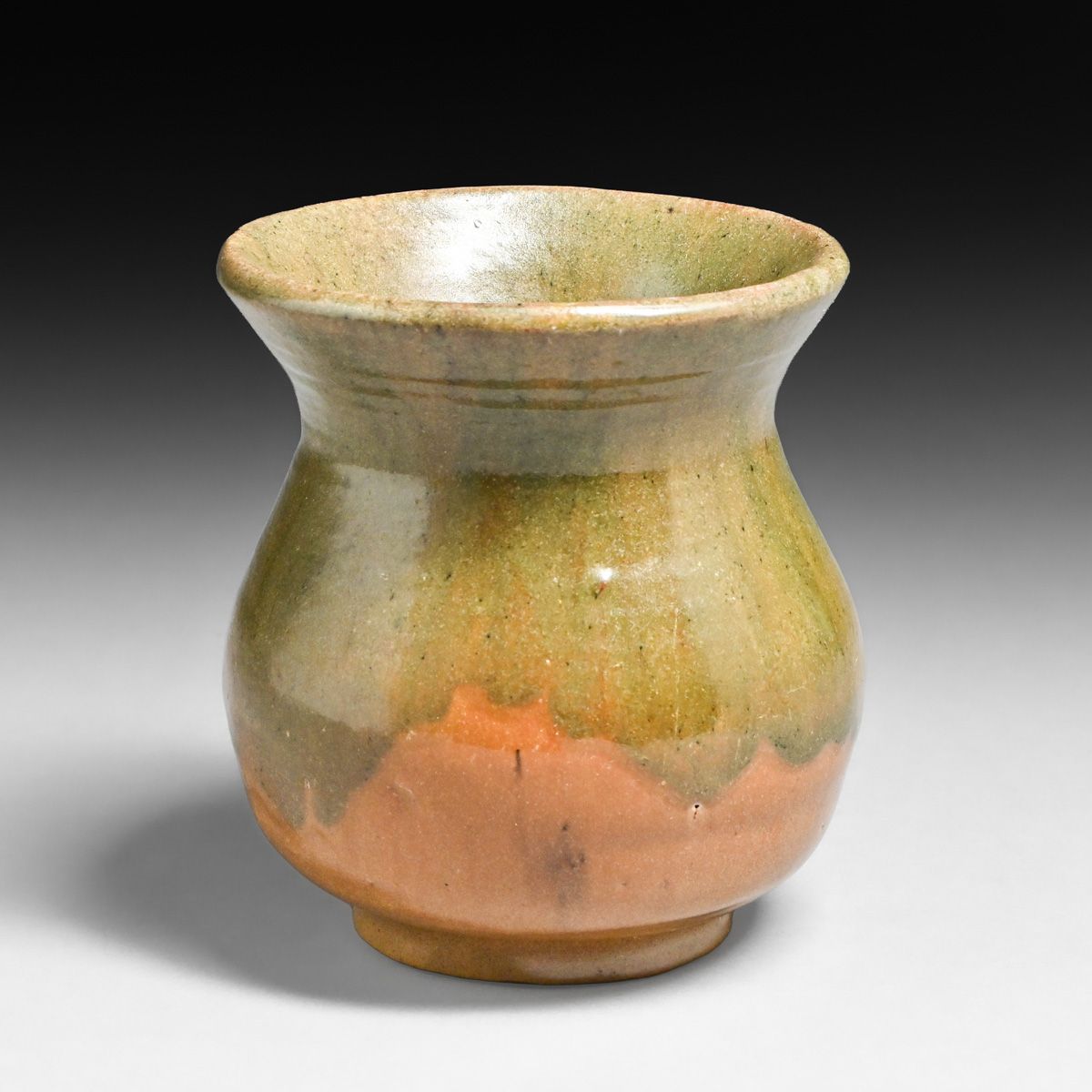 W.J. Walley Pottery - Worcester State Hospital Drip Vase c1913-1918. Signed. Perfect condition. William J. Walley taught patients pottery making as part of a therapeutic craft program called "Industrial Therapeutics". 4.5"h x 3.75"d