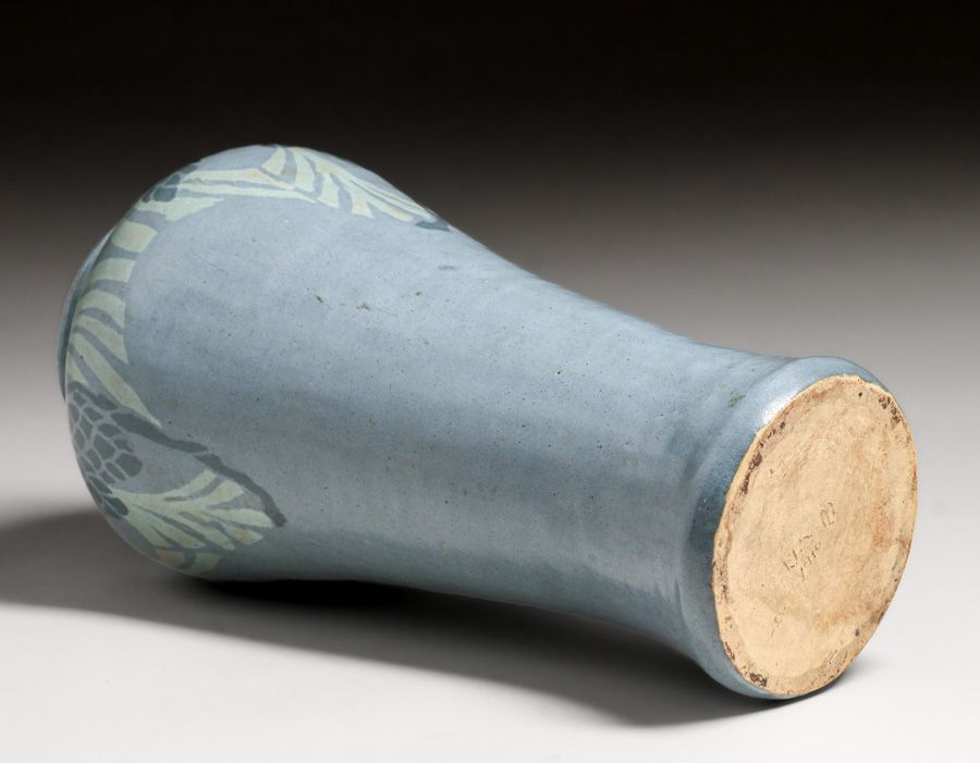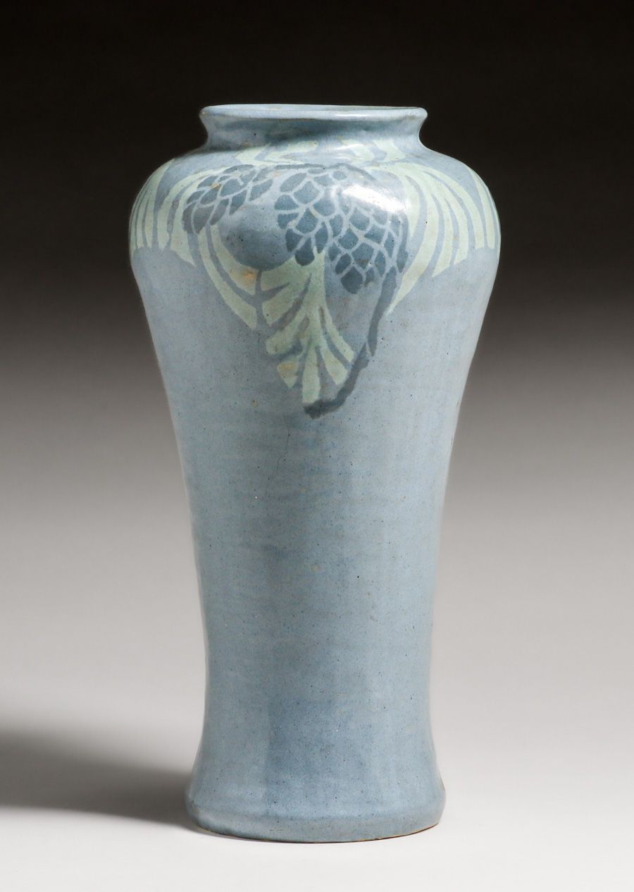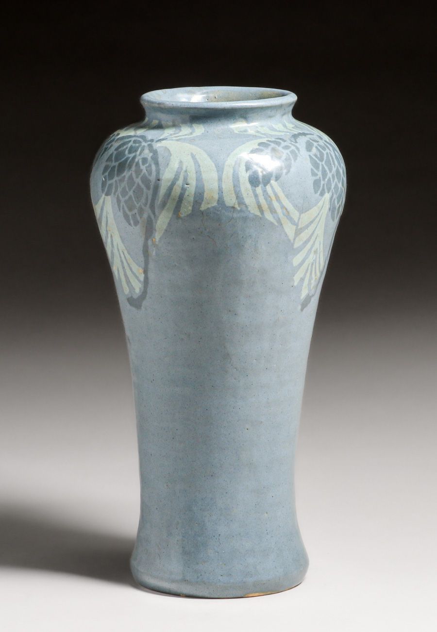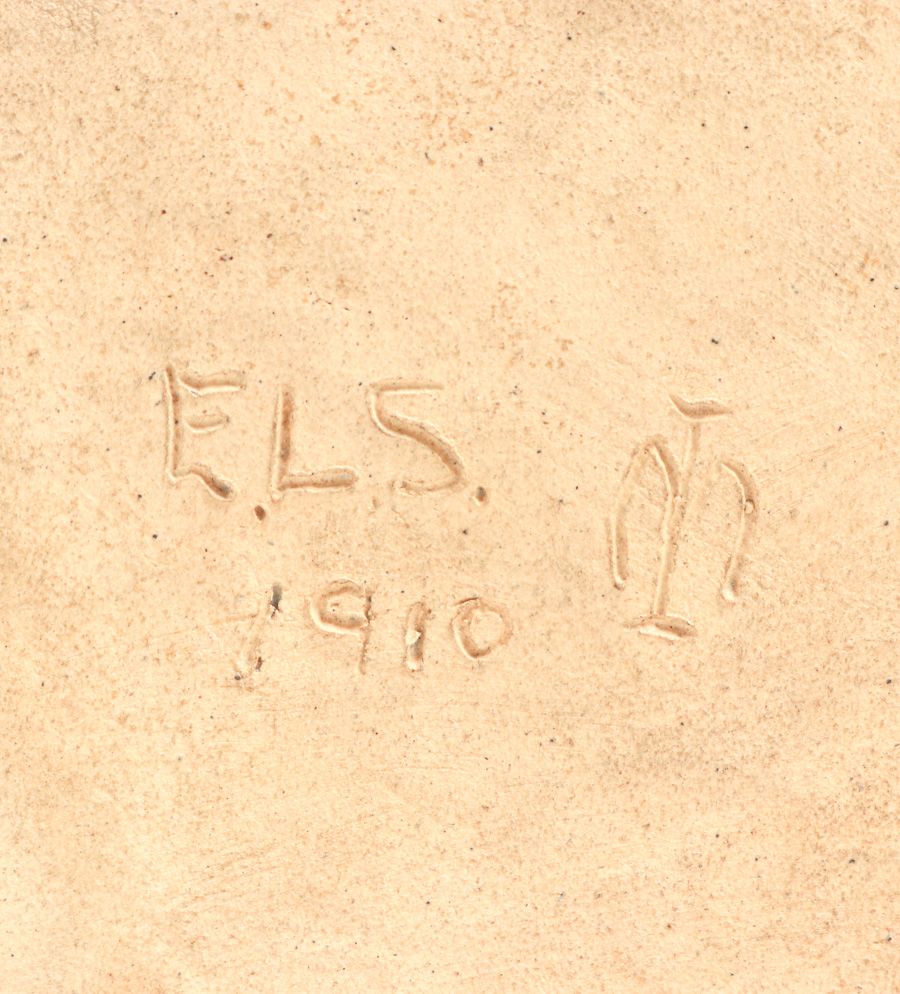 Mechanic's Institute - Rochester, NY Frederick Walrath Student Vase 1910. Signed "E.L.S. 1910" and with Mechanic's Institute insignia. Frederick Walrath was the instructor of ceramics at the Mechanic's institute from 1907-1918. Perfect condition. 14.5"h x 7"d SOLD
