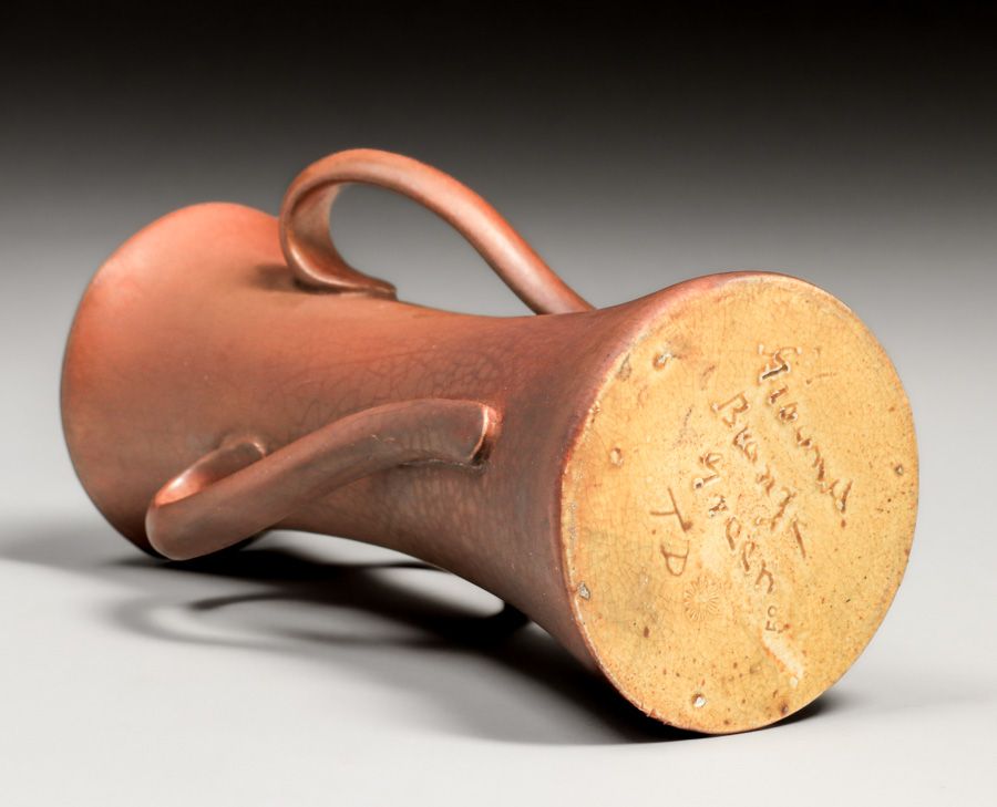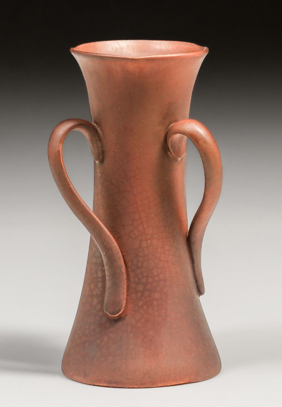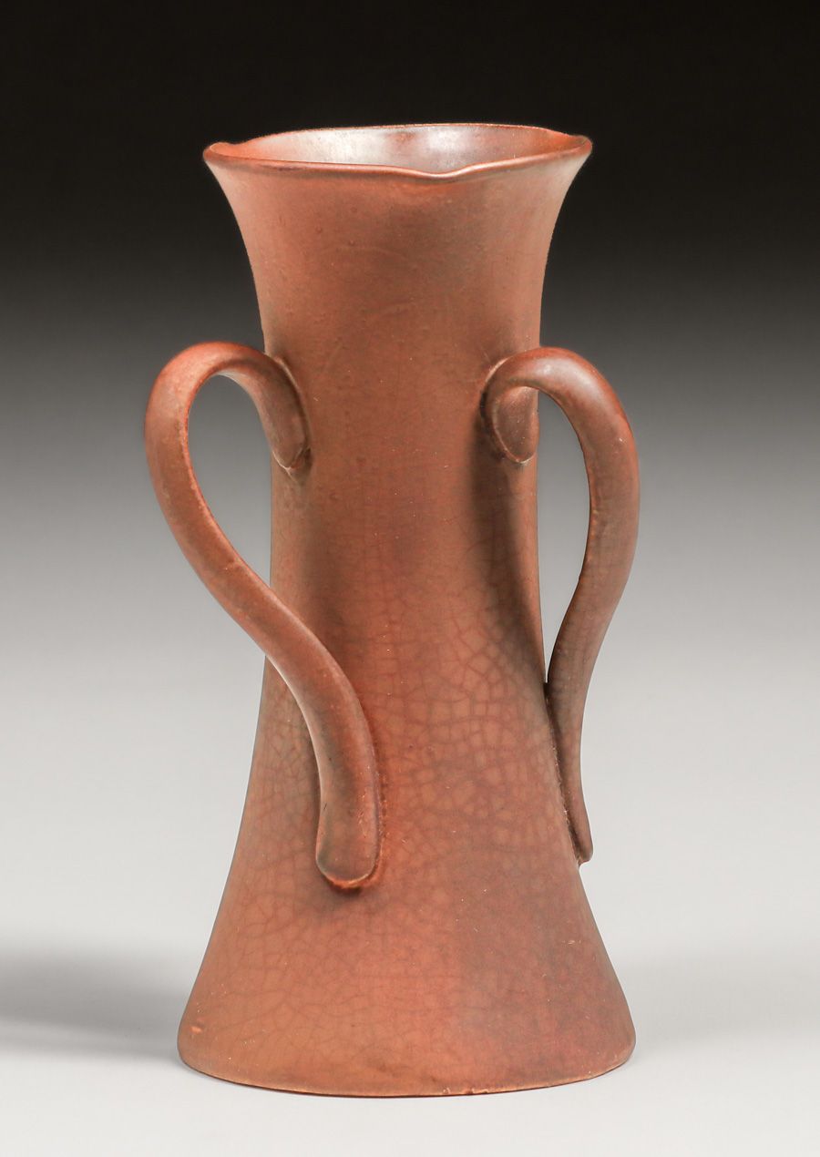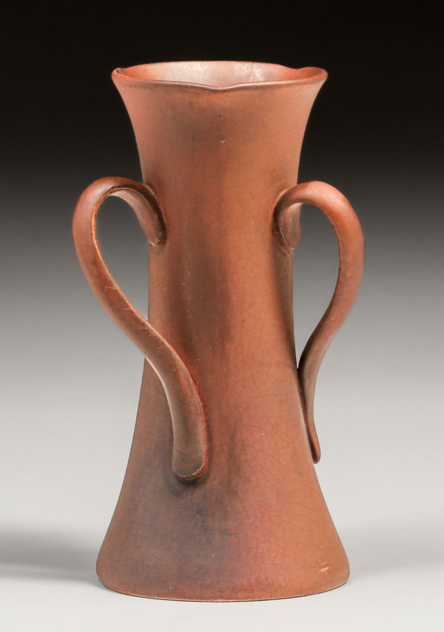 Rare Wannopee Pottery – New Milford, CT Three-Handled Vase c1900. Signed. Perfect condition. 8"h x 4"d $1800